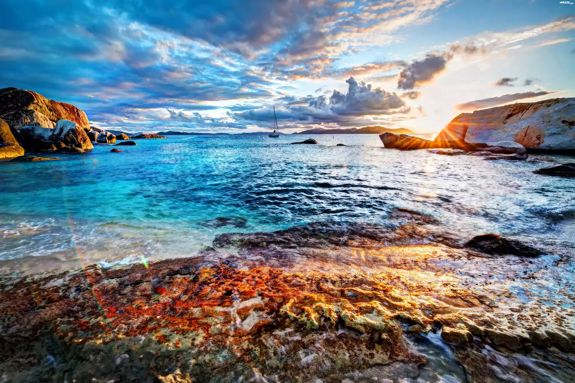Zdjęcia, Chmury, Morze, Skały