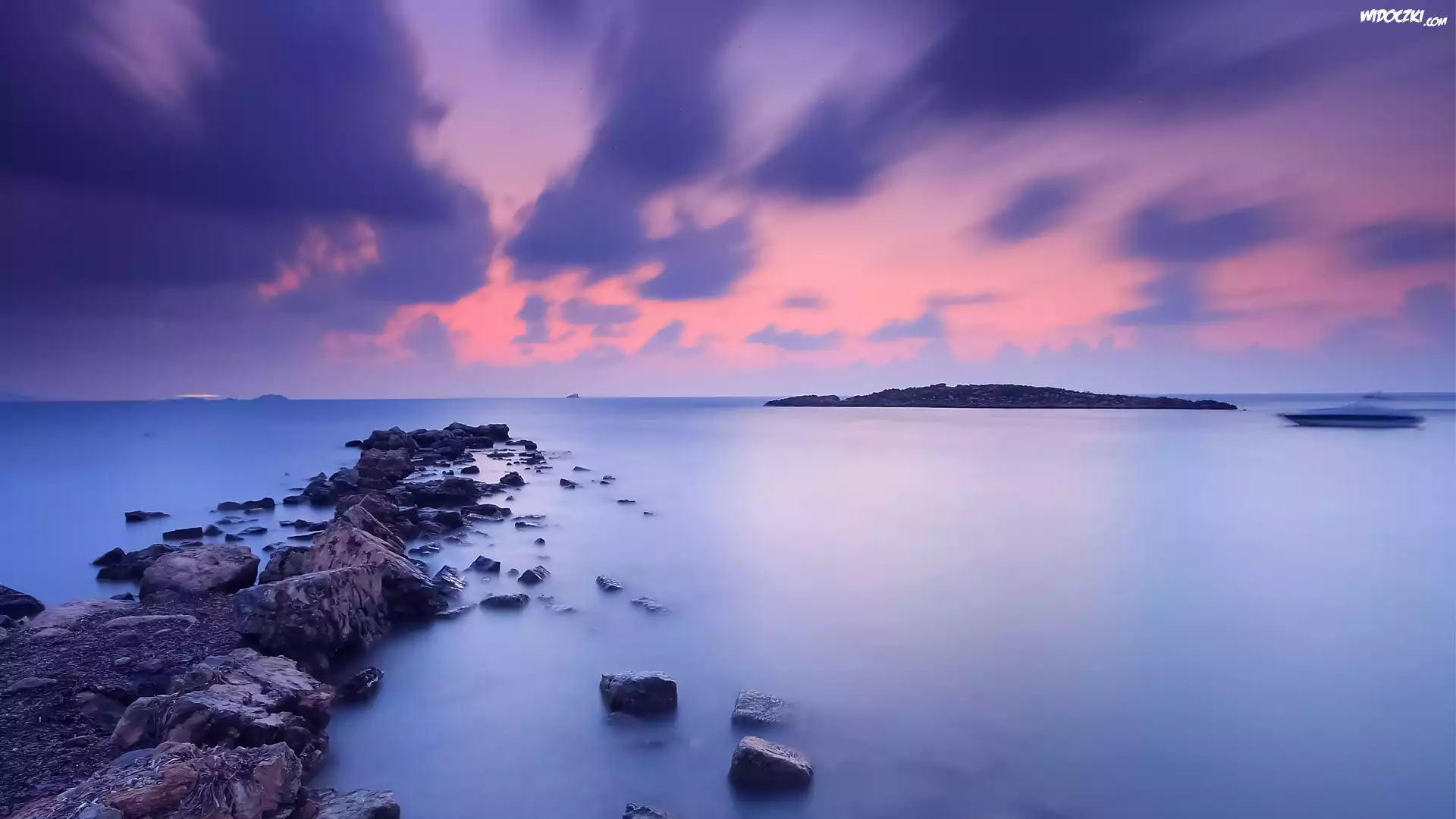 Zdjęcia, Morze, Zachód, Słońca, Niebo, Chmury, Skały