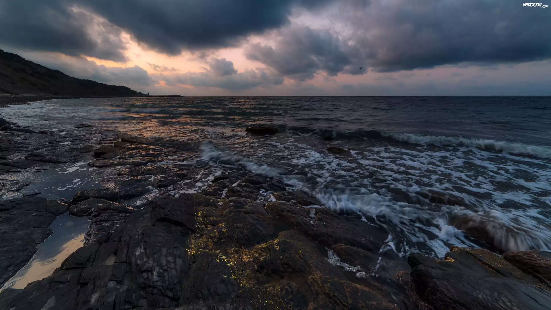 Zdjęcia, Morze, Brzeg, Skały, Ciemne, Chmury
