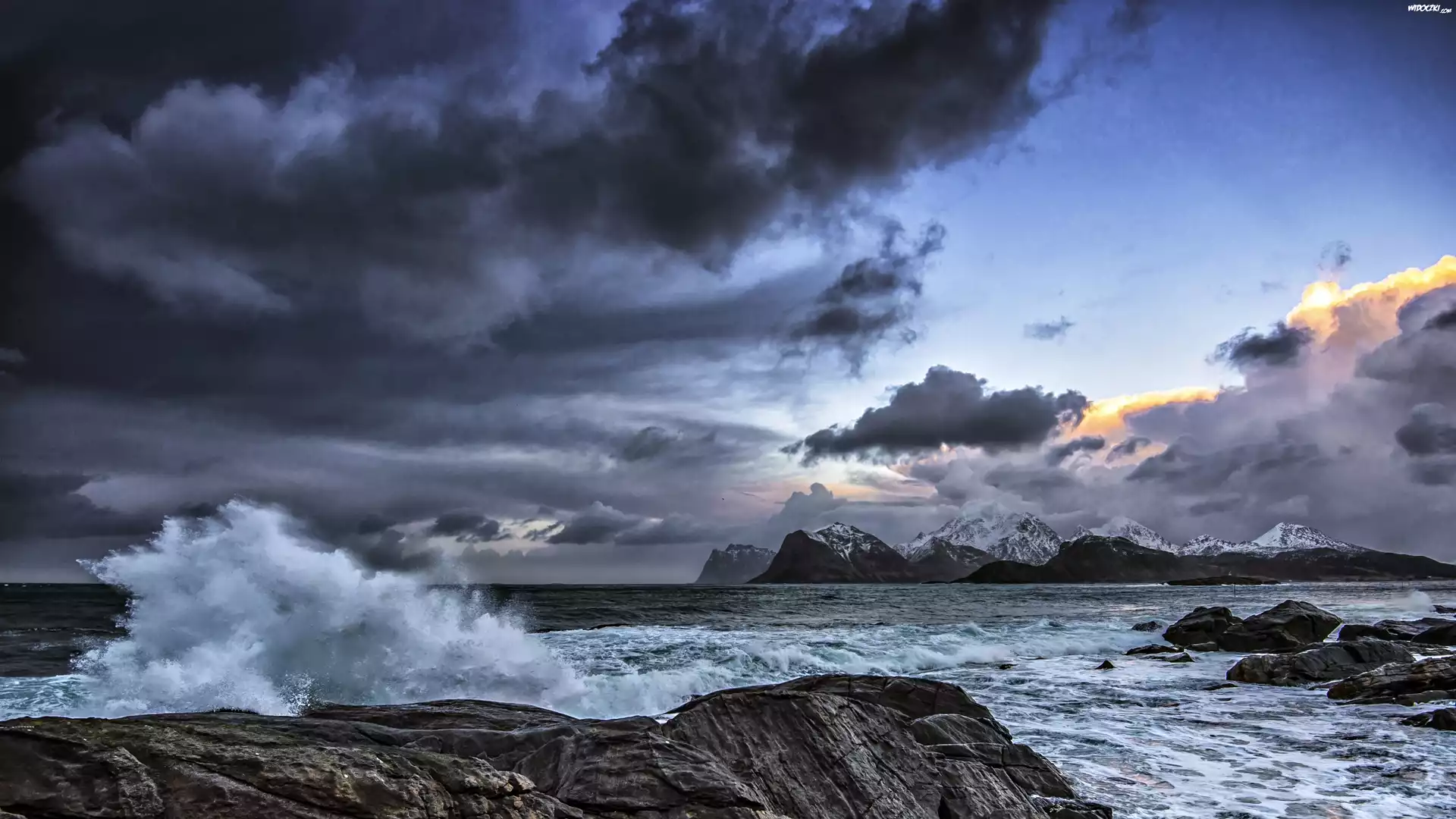 Zdjęcia, Morze, Skały, Ciemne, Chmury