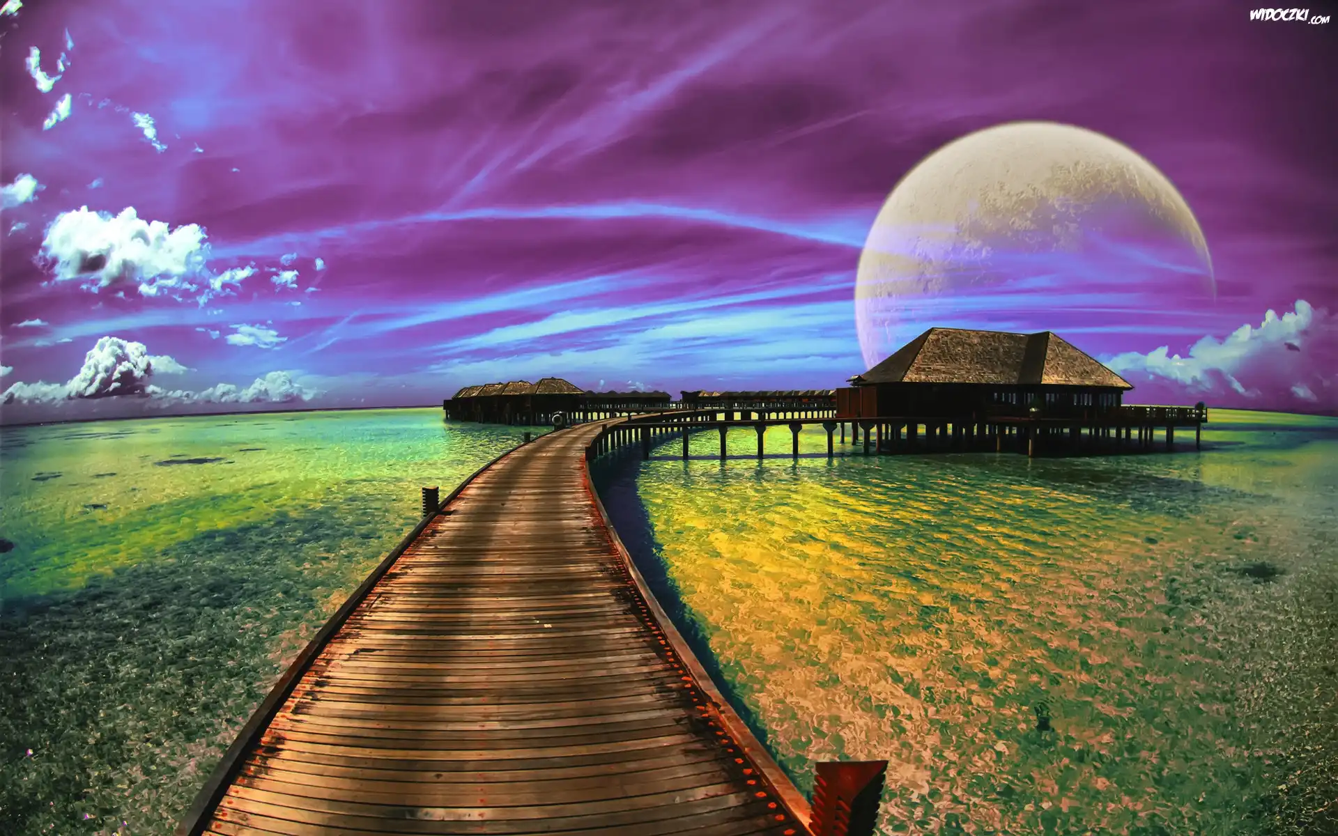 Morze, Molo, Domek, Planeta