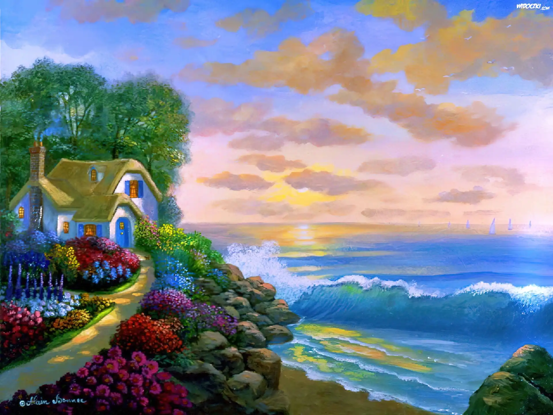 Zdjęcia, Morze, Niebo, Domek, Wybrzeże