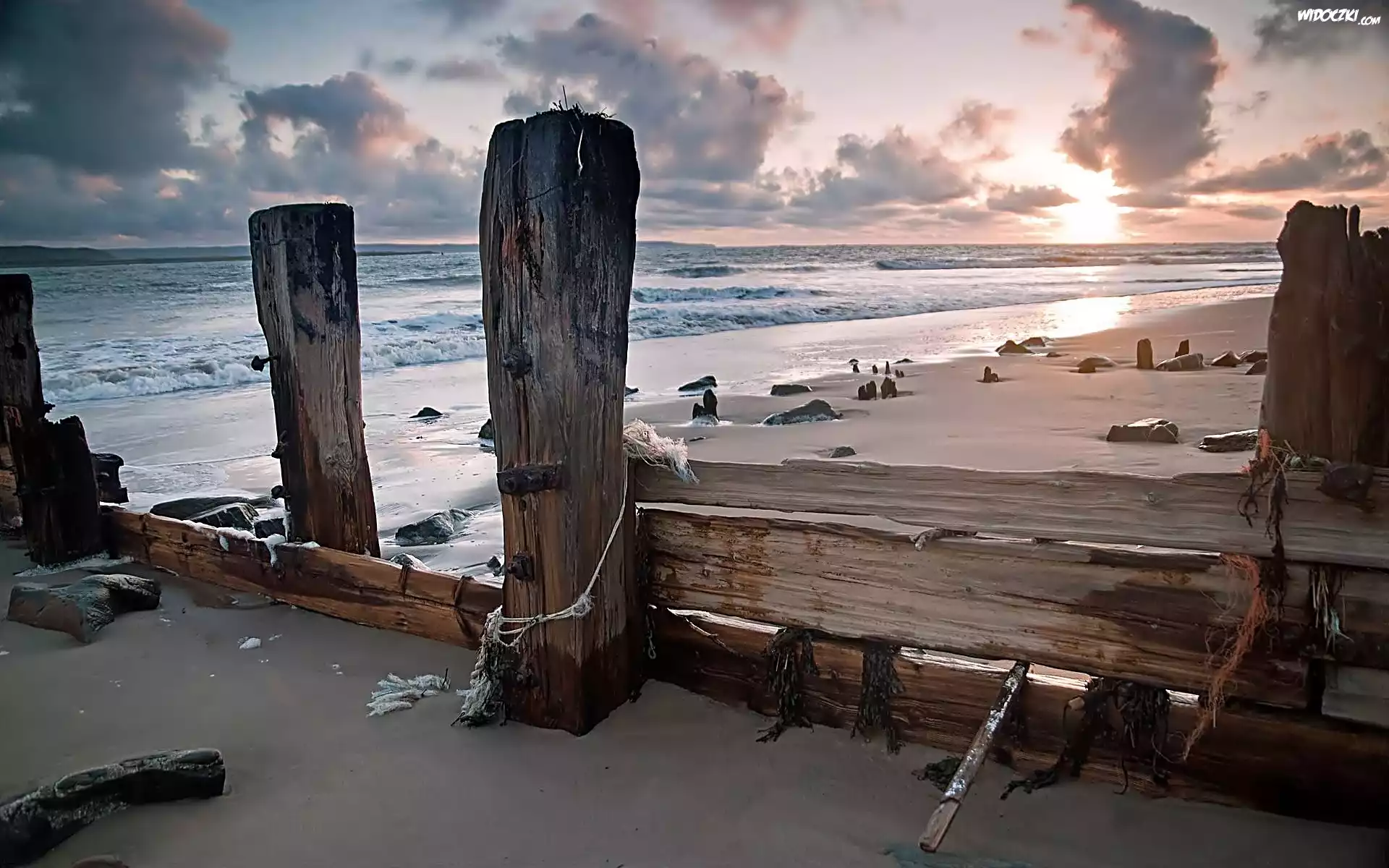 Zdjcia, Morze, Brzeg, Drewniane, Bale