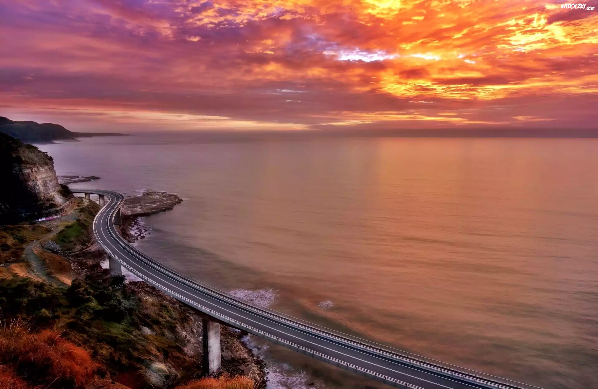 Zdjęcia, Morze, Zachód, Słońca, Droga, Brzeg