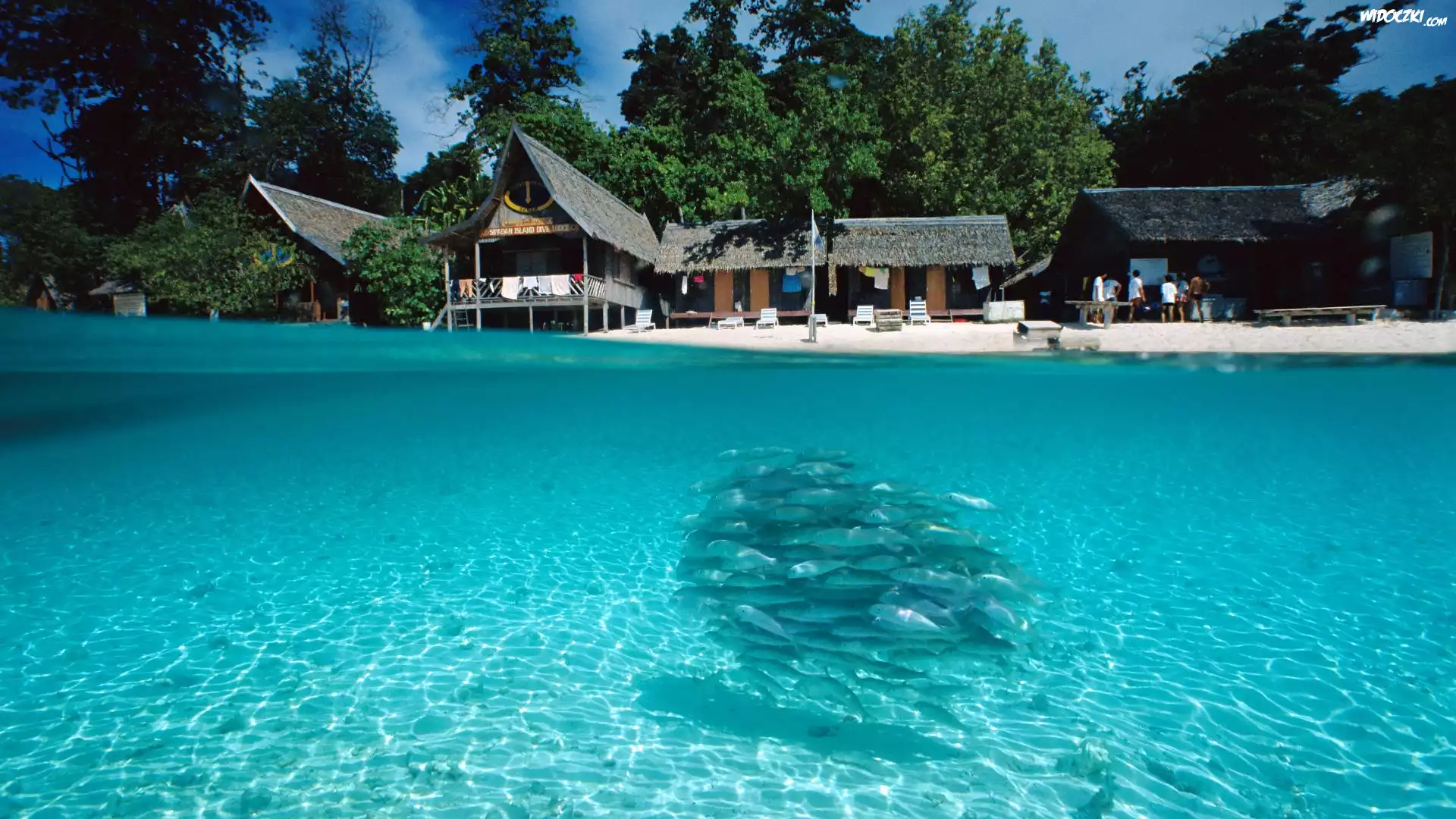 Zdjęcia, Morze, Rybki, Domki, Letniskowe, Drzewa, Tropikalne