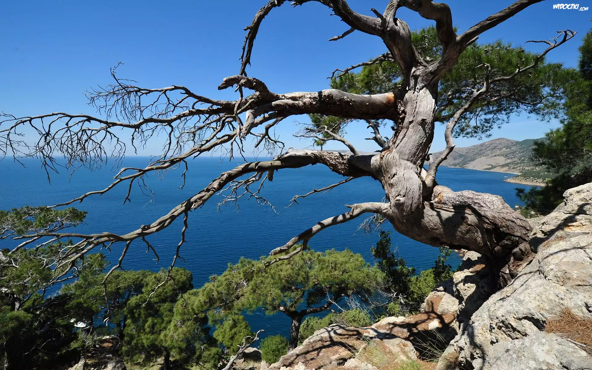 Zdjęcia, Drzewa, Morze, Klif