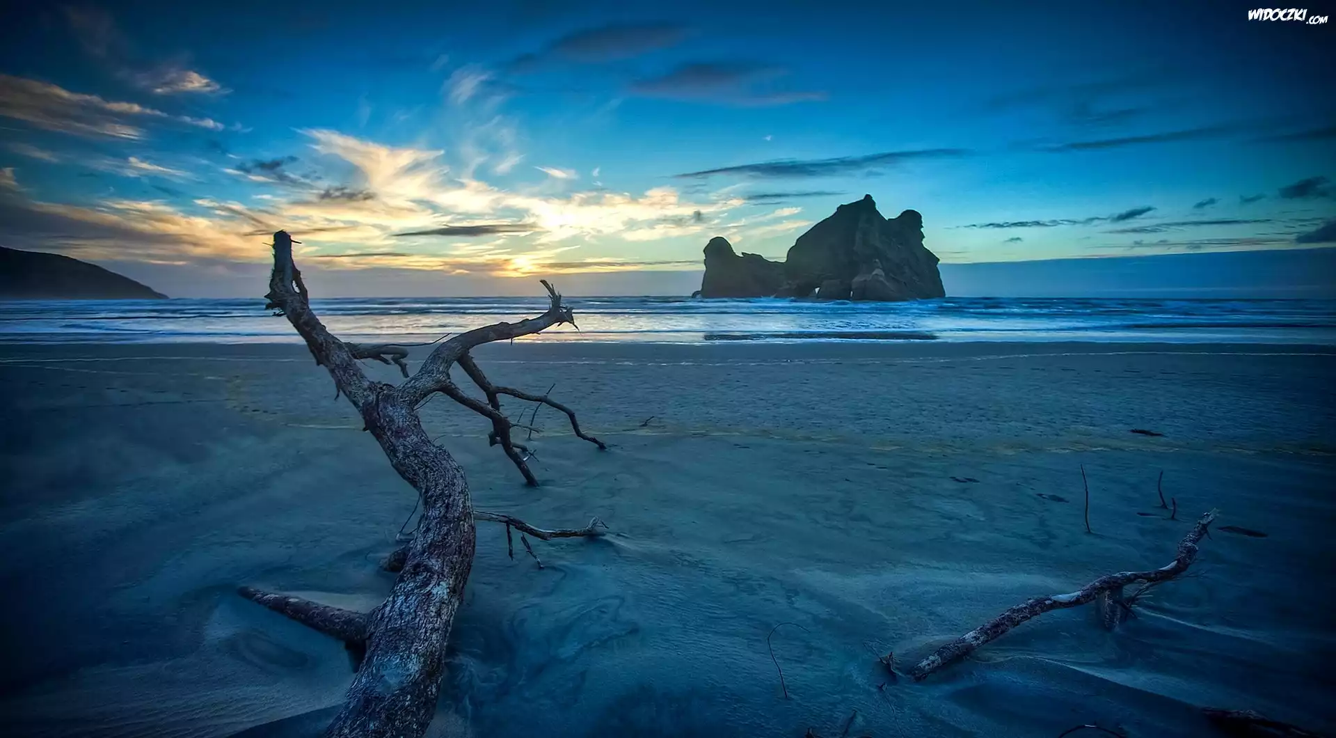 Zdjęcia, Morze, Skała, Konar, Drzewa, Niebo
