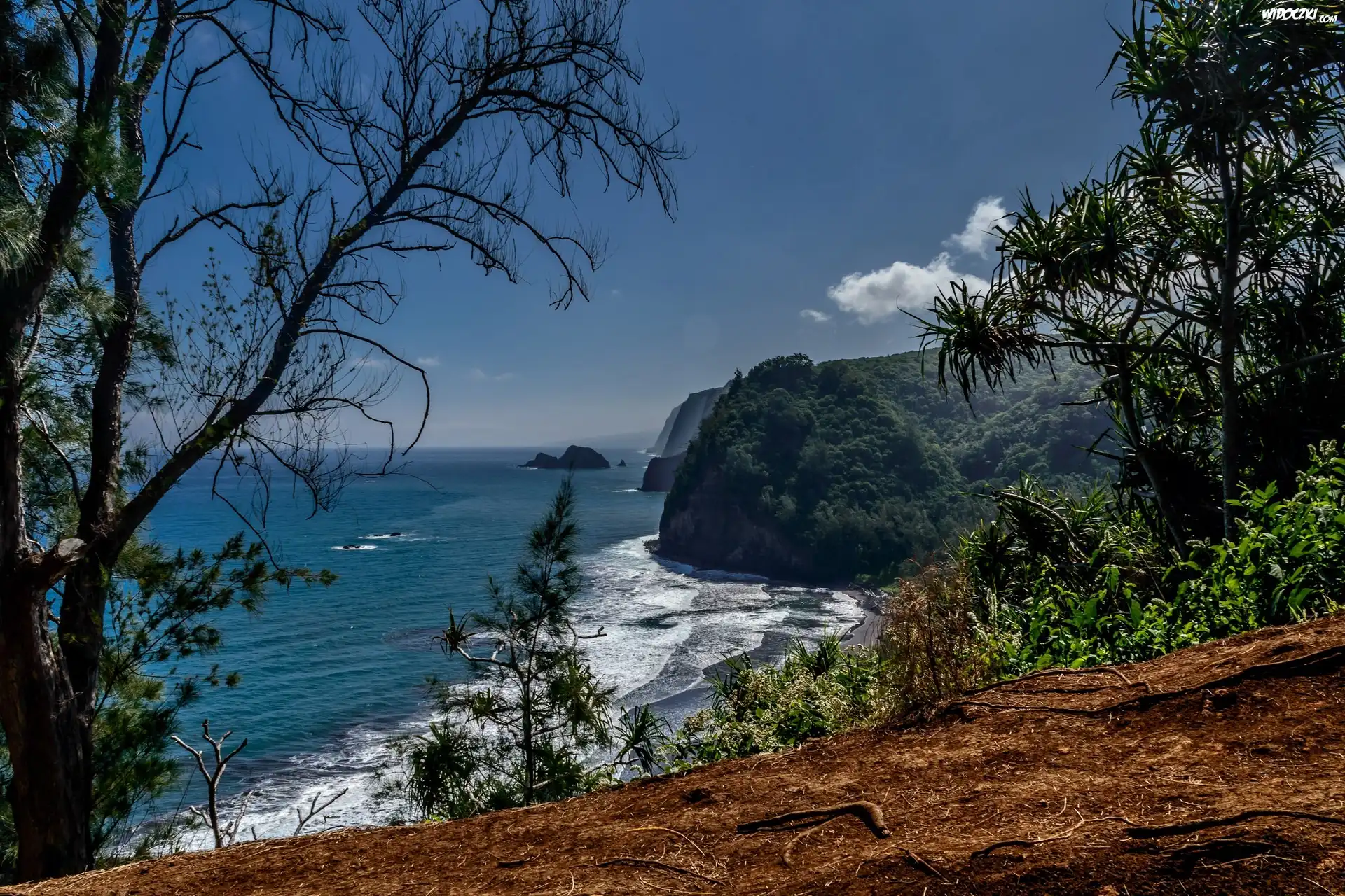Morze, Wybrzeże, Drzewa, Klif