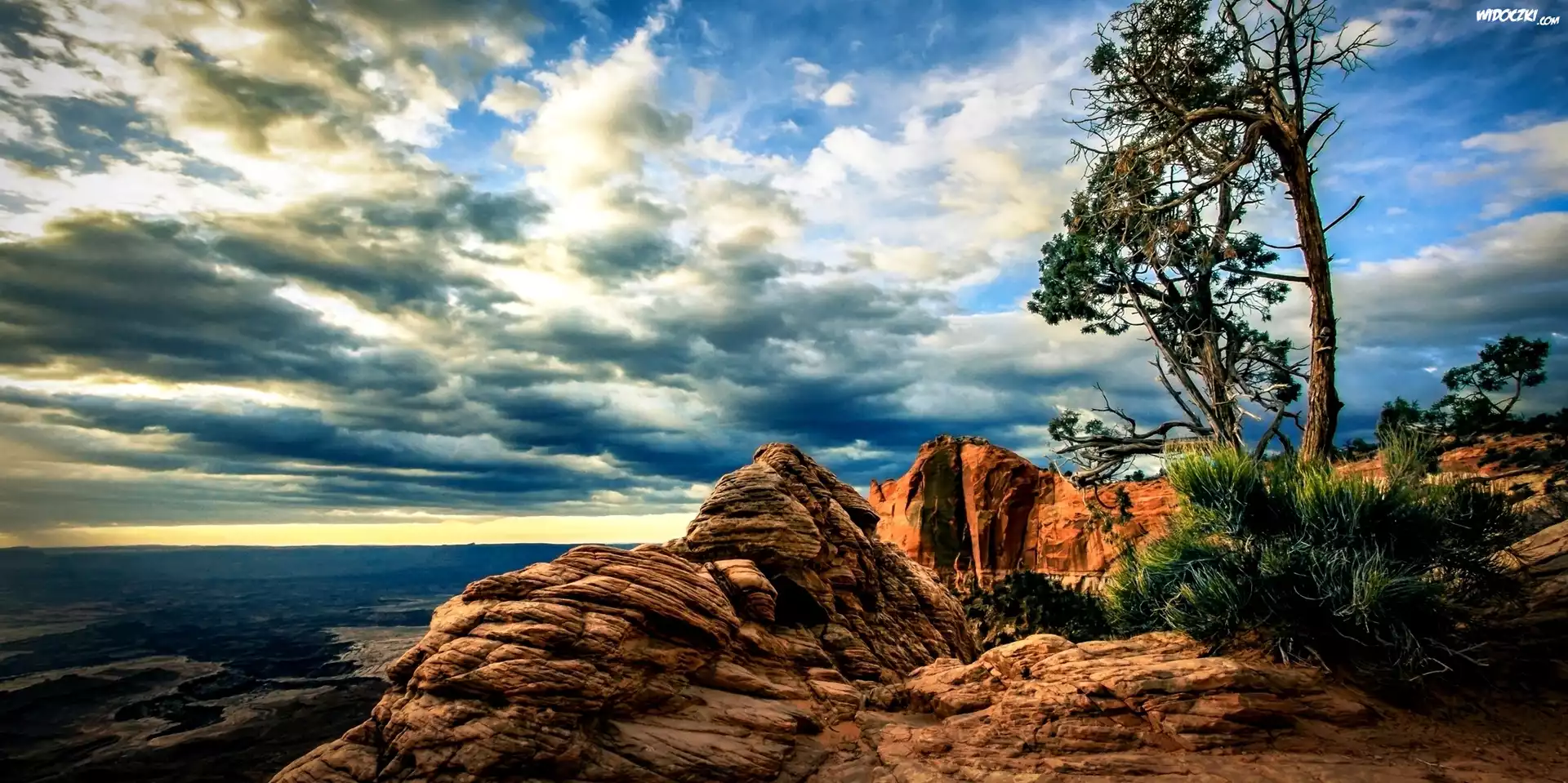 Morze, Kanion, Chmury, Drzewo, Skała