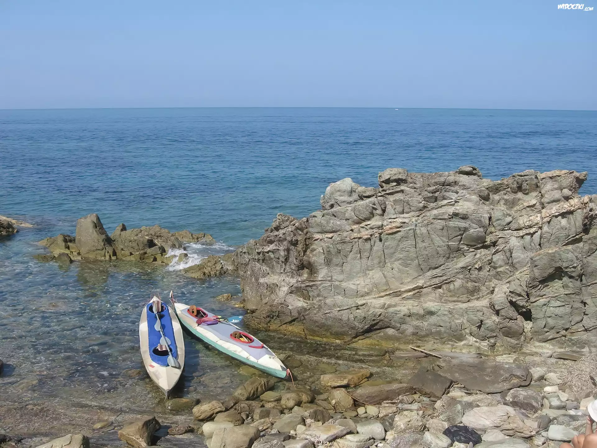 Zdjęcia, Morze, Skały, Dwa, Kajaki