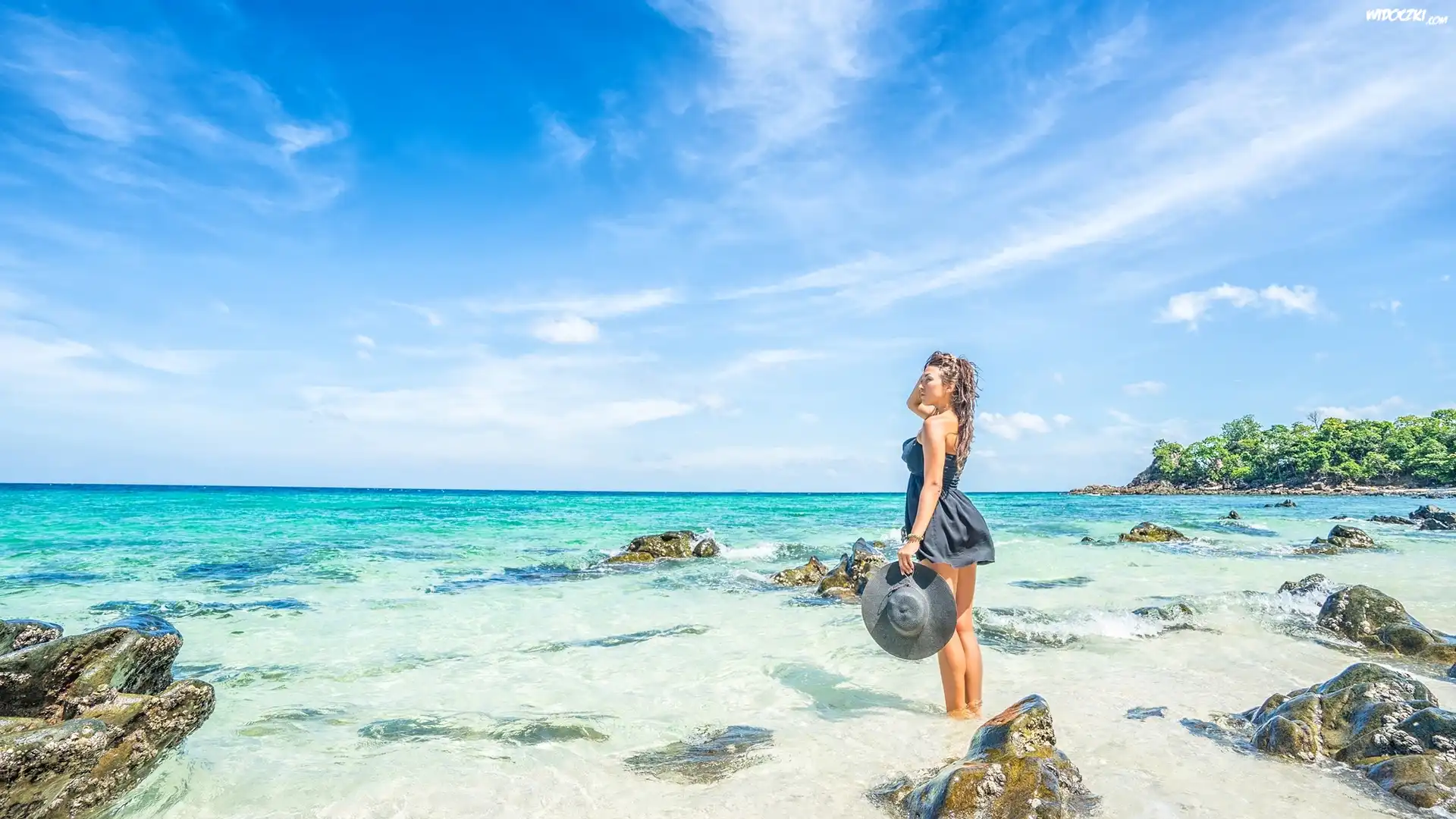Zdjęcia, Morze, Kamienie, Dziewczyna, Wakacje