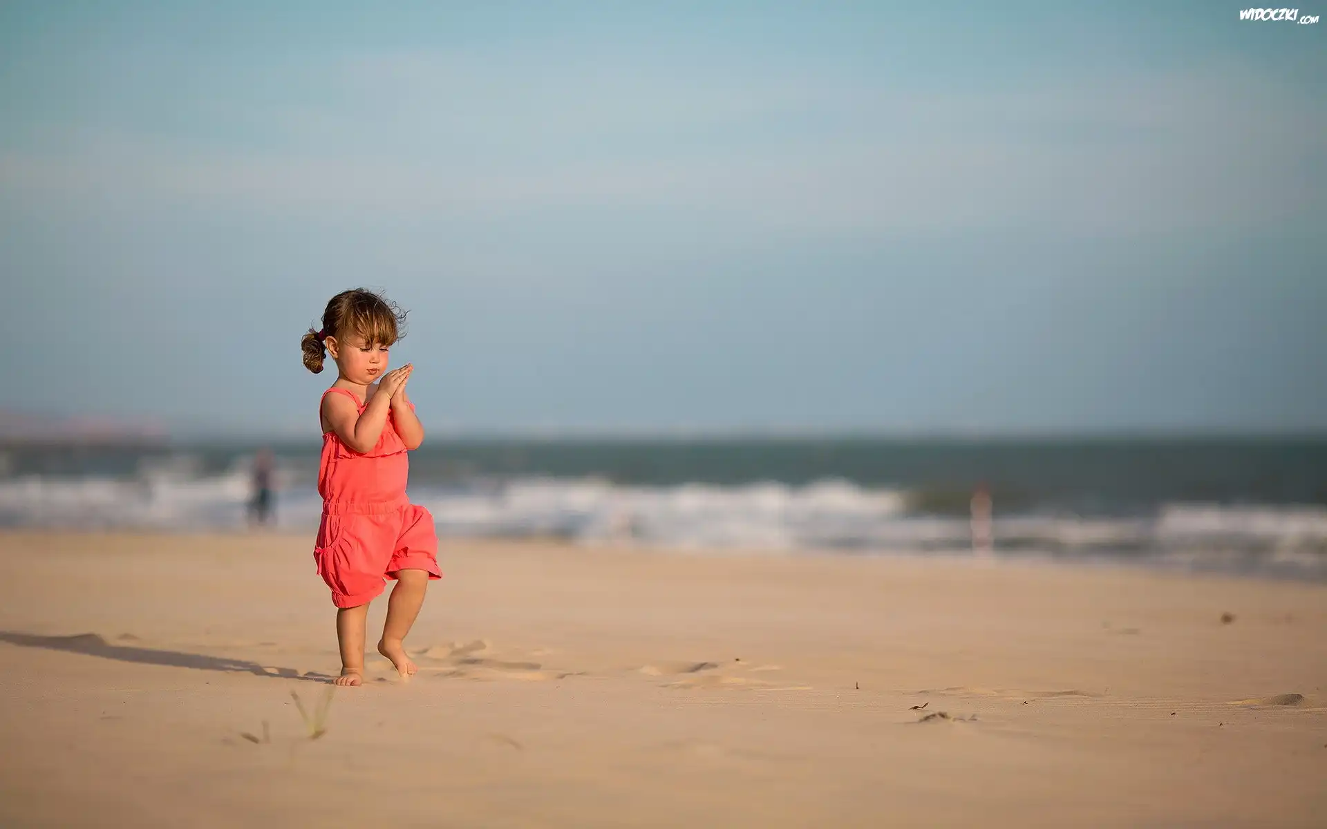 Zdjęcia, Dziewczynka, Morze, Plaża