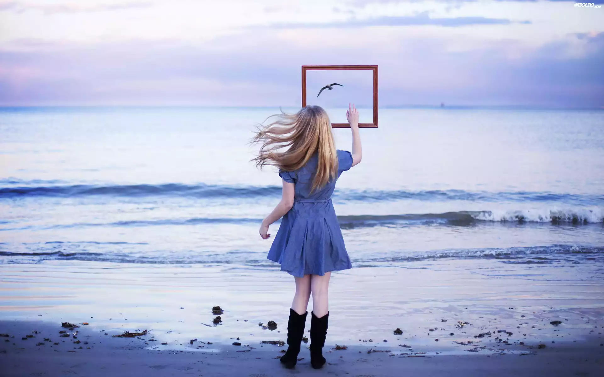 Zdjęcia, Dziewczynka, Morze, Ramka