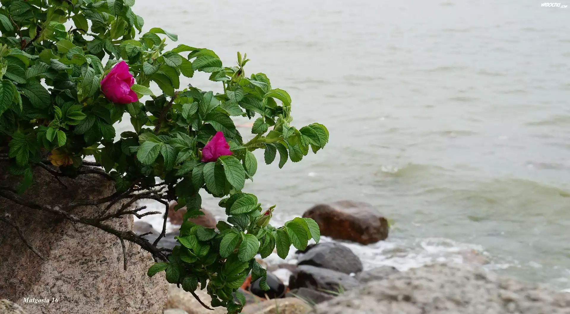 Zdjęcia, Morze, Woda, Kamienie, Dzika Róża