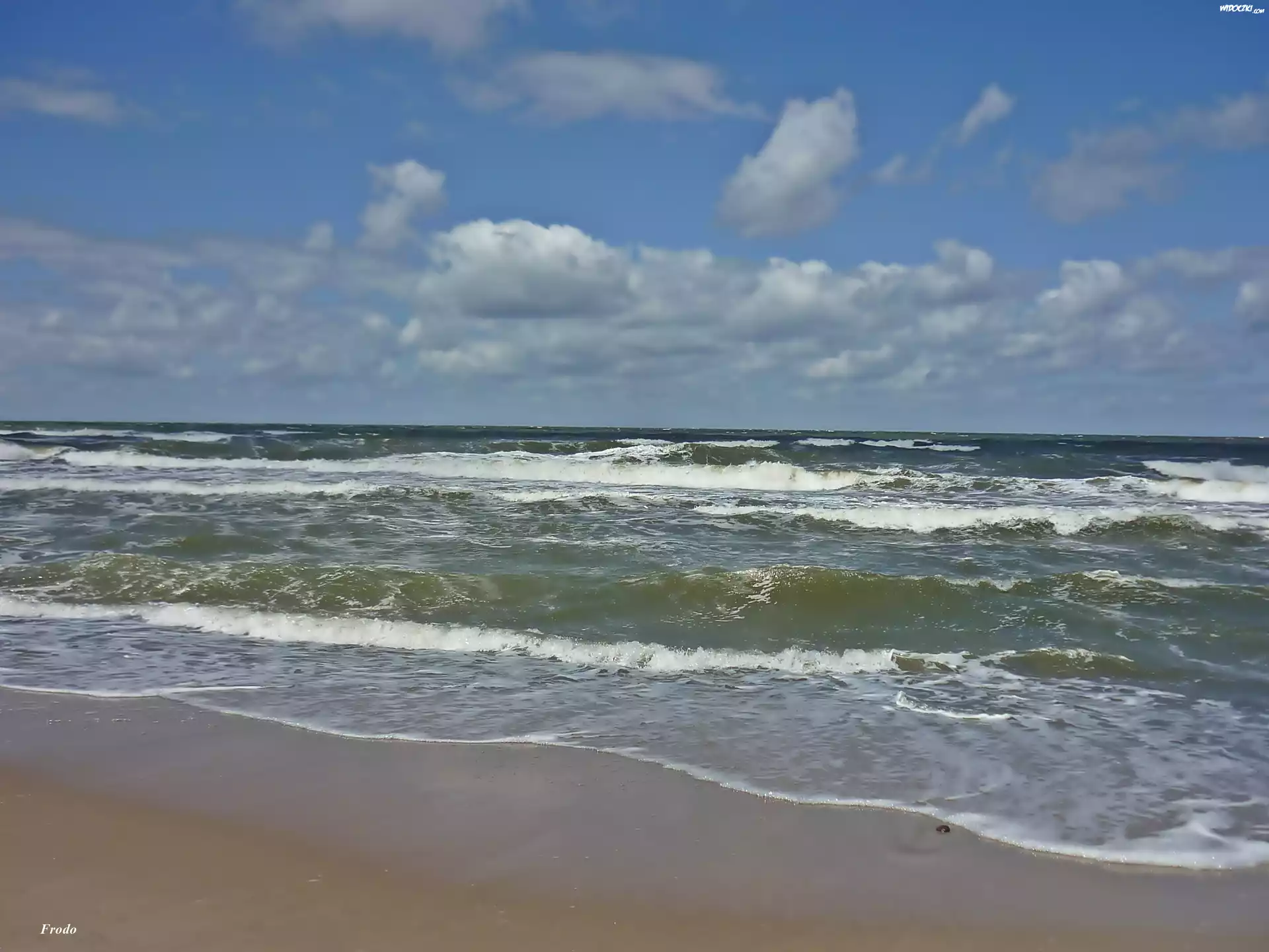 Zdjęcia, Morze, Plaża, Niebo, Chmury, Fale, Lato