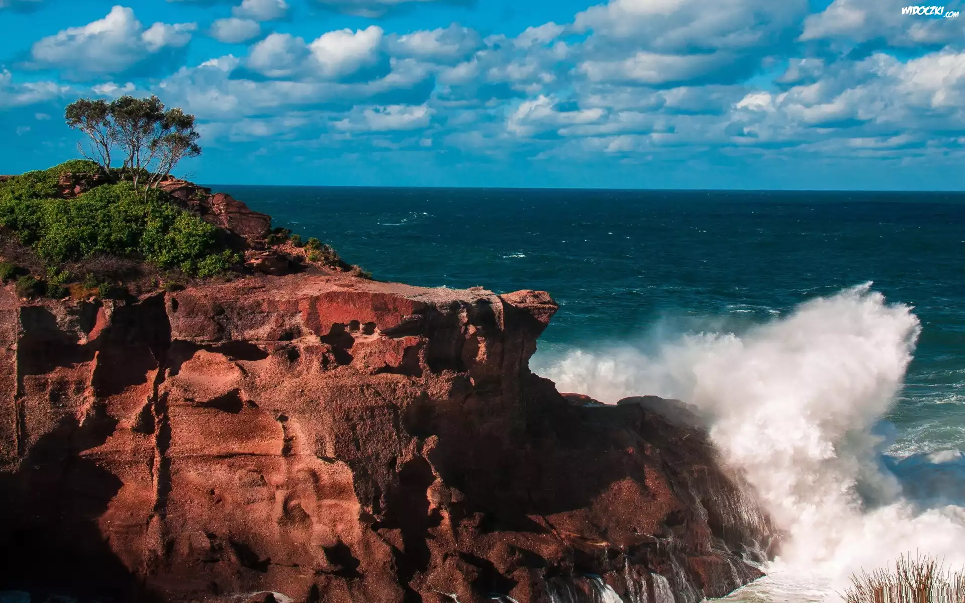 Zdjęcia, Morze, Skały, Fale, Drzewa