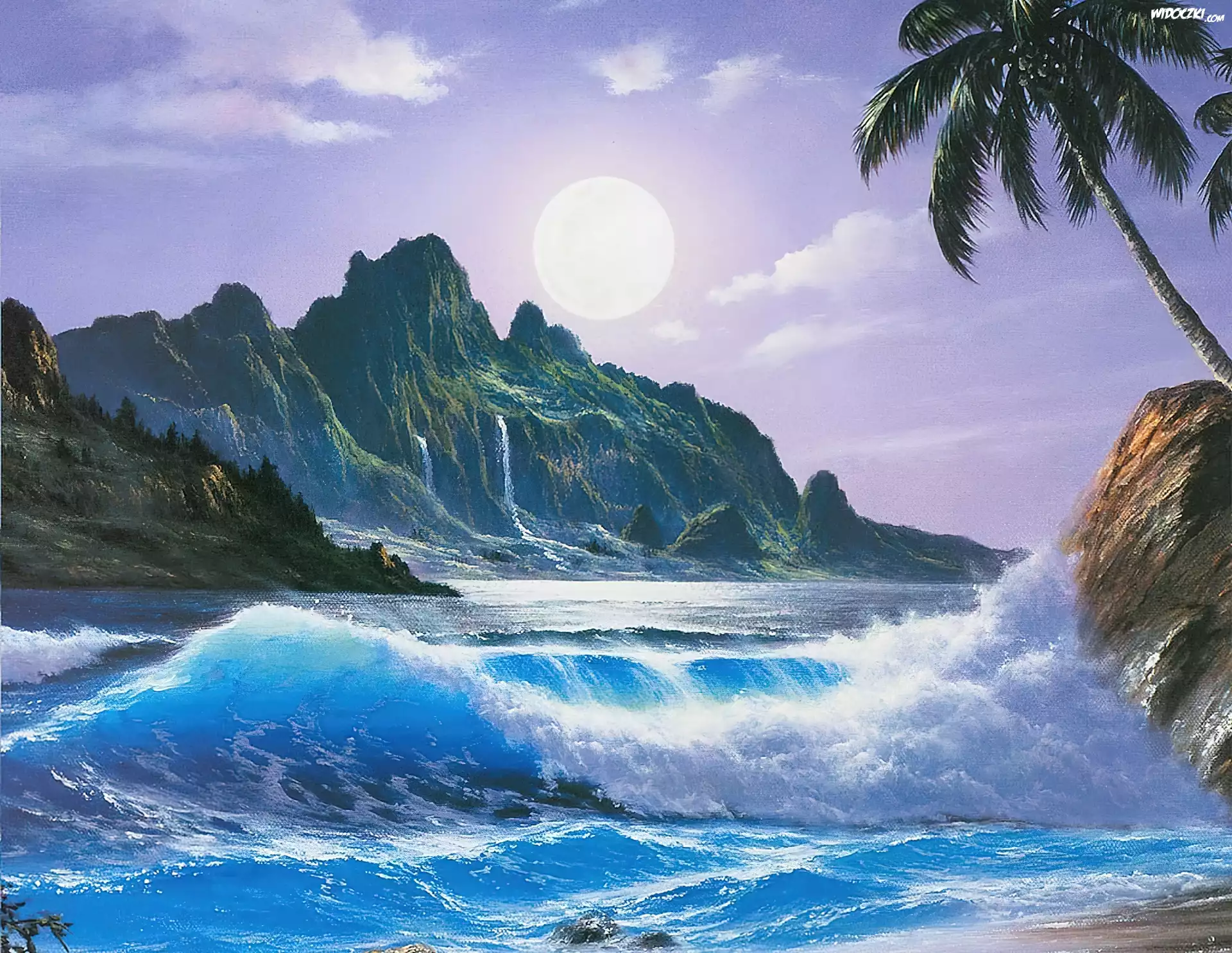 Zdjęcia, Morze, Fale, Góry, Palmy
