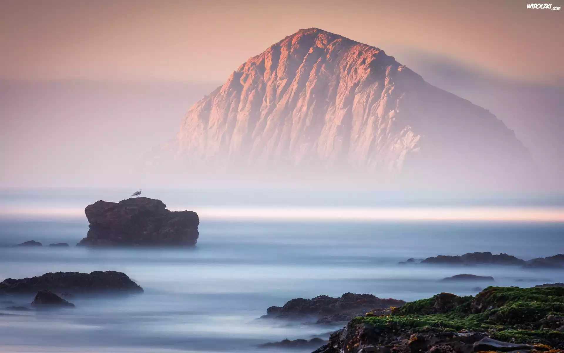 Zdjęcia, Morze, Skały, Góry, Mgła