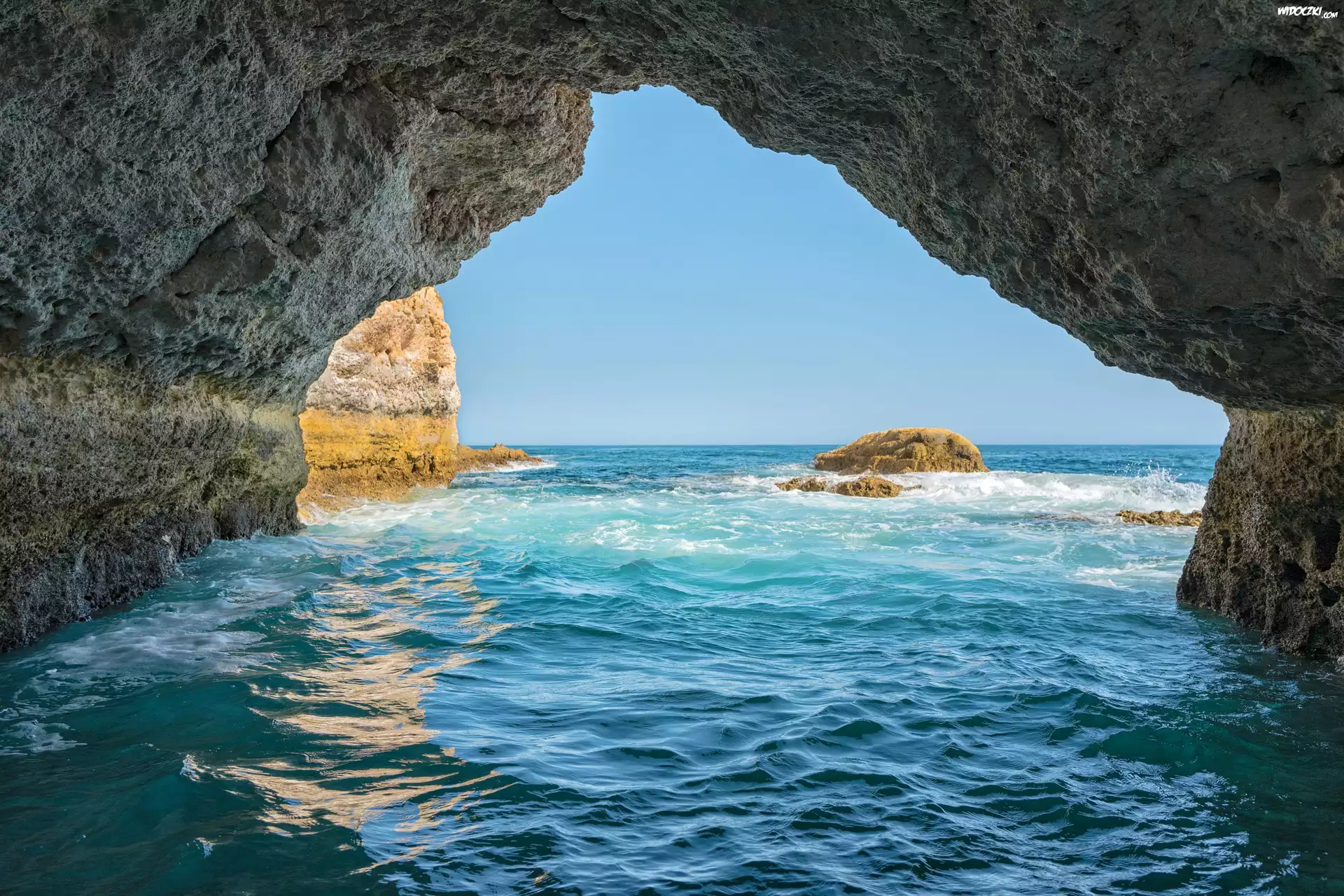 Zdjęcia, Morze, Skały, Grota, Niebo