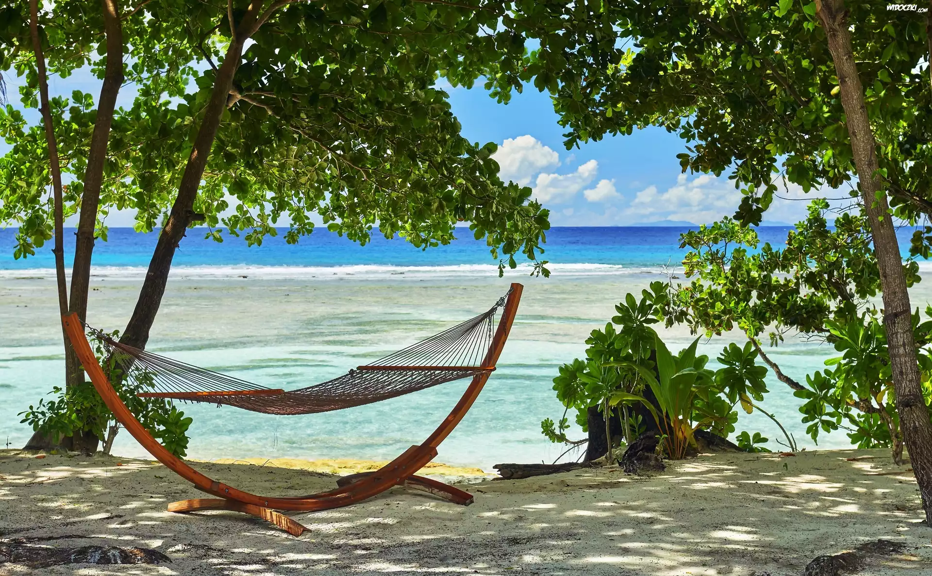 Morze, Drzewa, Hamak, Lato