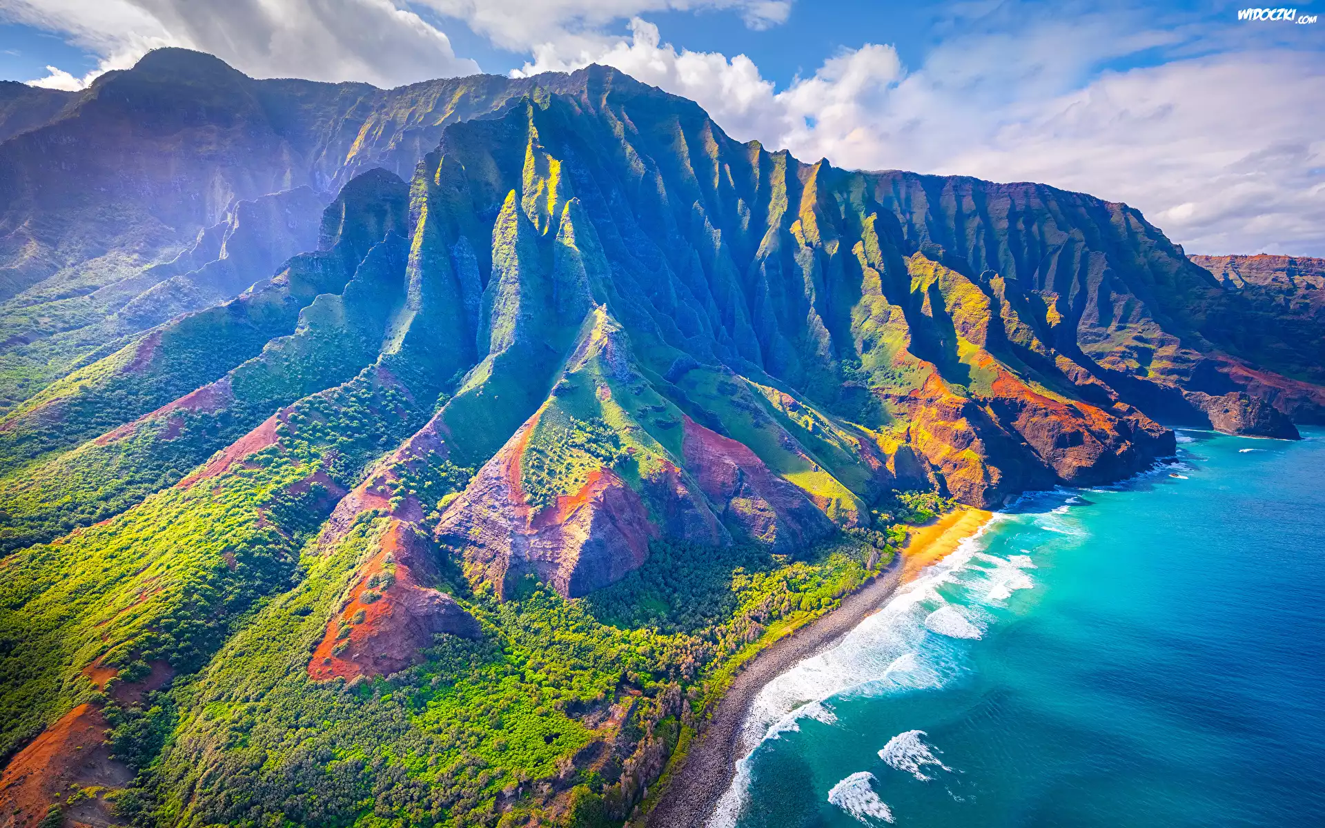 Zdjęcia, Stany Zjednoczone, Hawaje, Wyspa Kauai, Góry, Roślinność, Morze