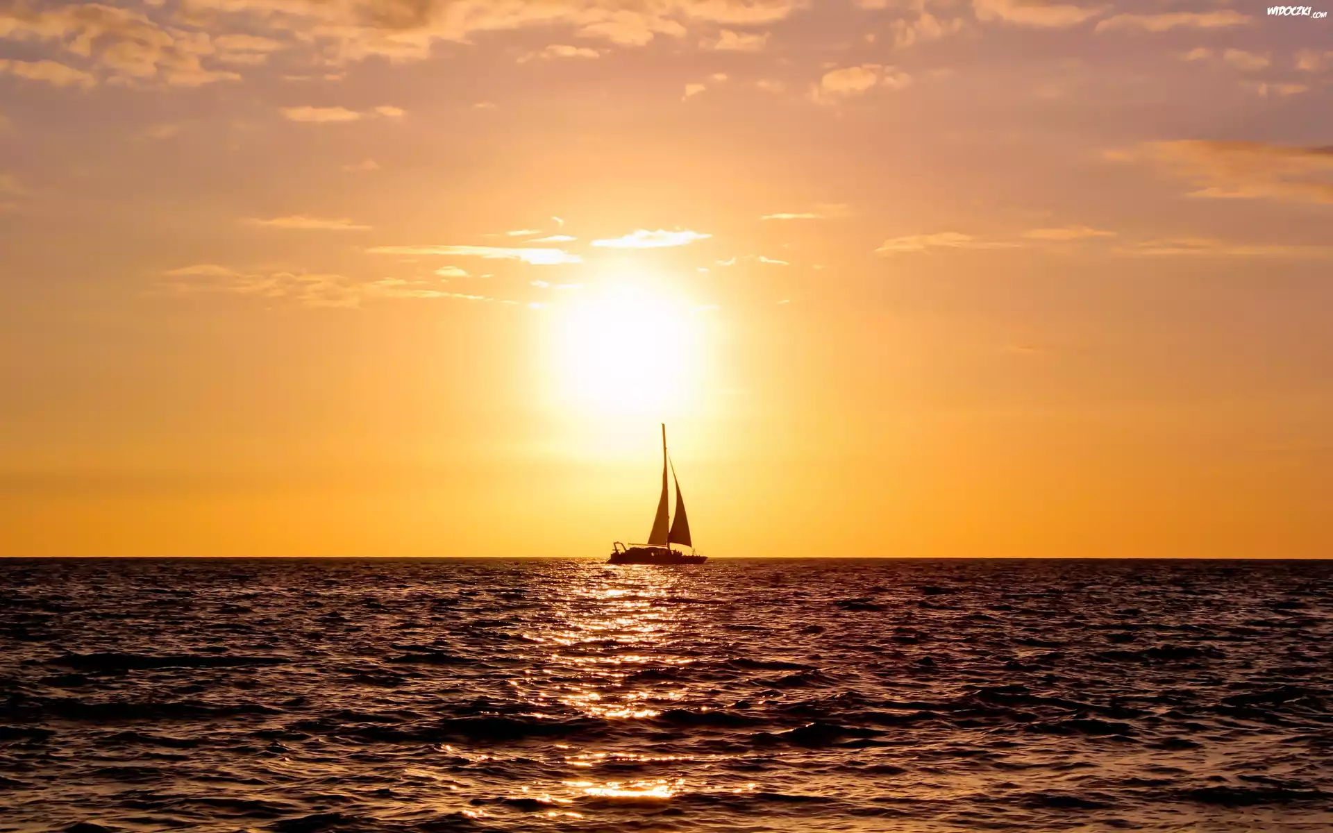 Zdjęcia, Morze, Wschód słońca, Żaglówka