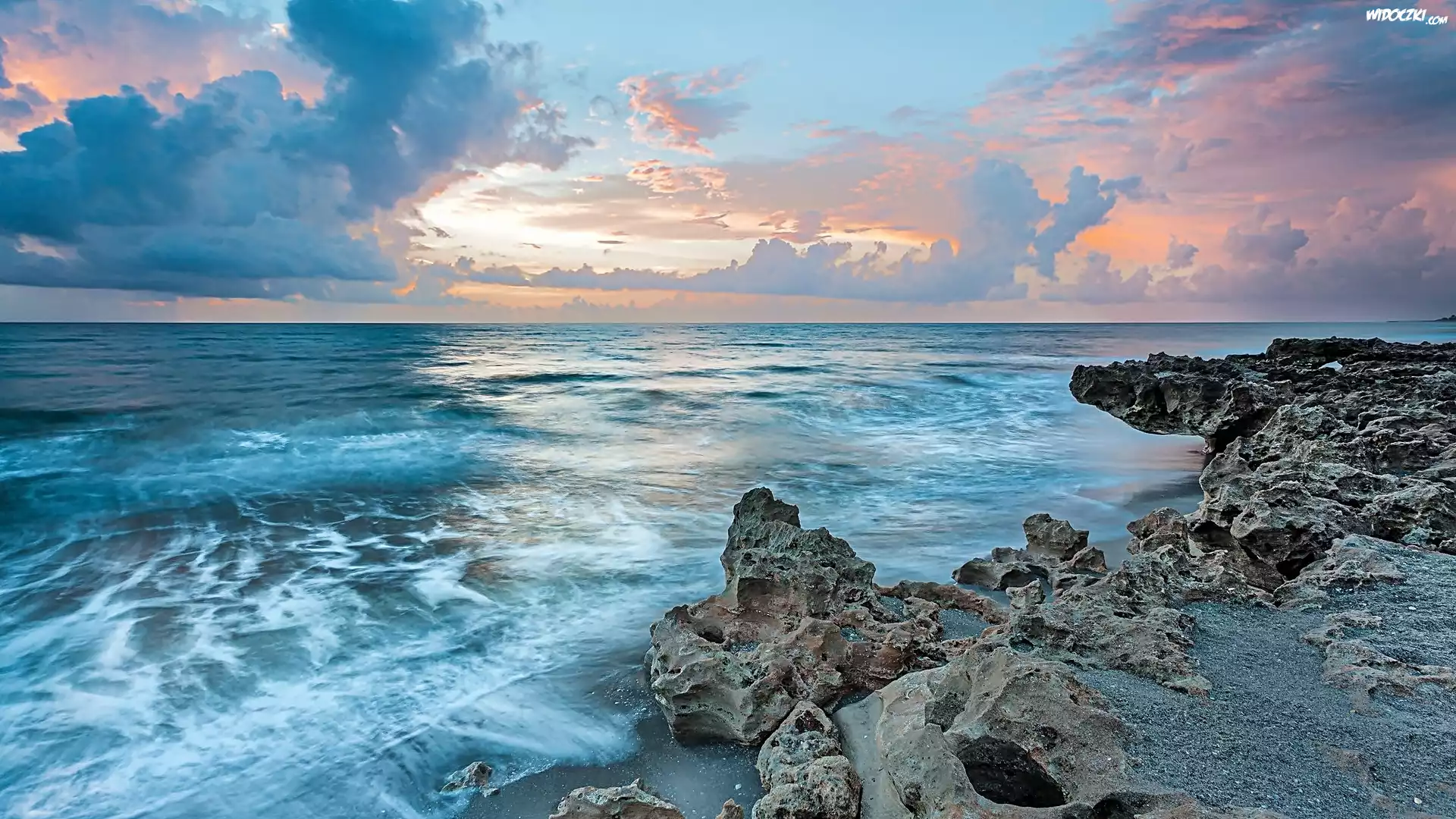 Zdjęcia, Morze, Brzeg, Kamienie, Chmury