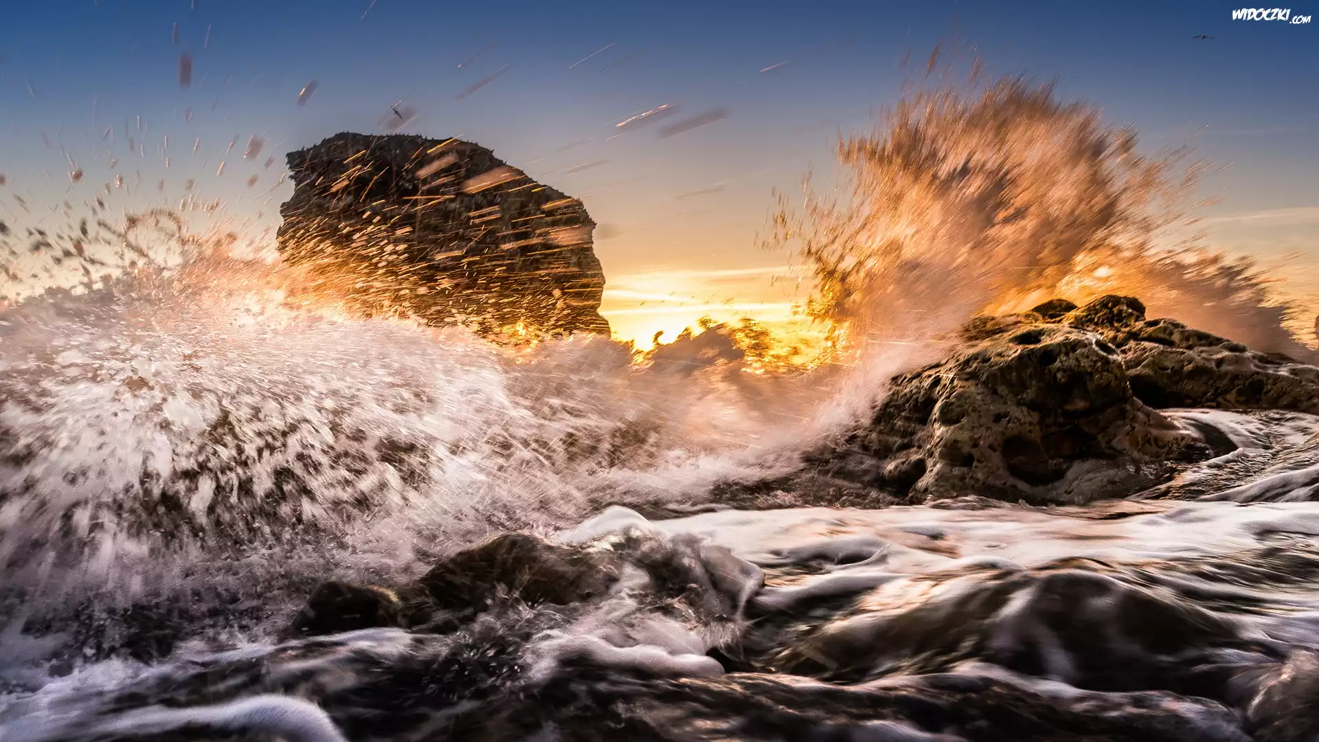 Zdjęcia, Morze, Fale, Kamienie, Skały
