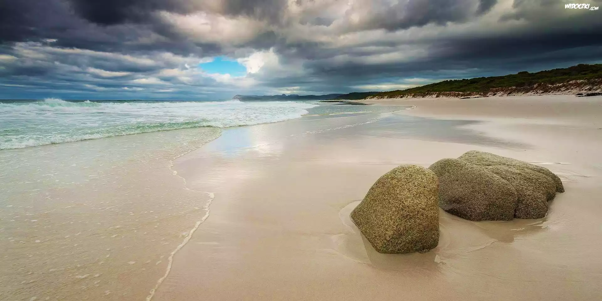 Zdjęcia, Morze, Piasek, Kamienie, Niebo