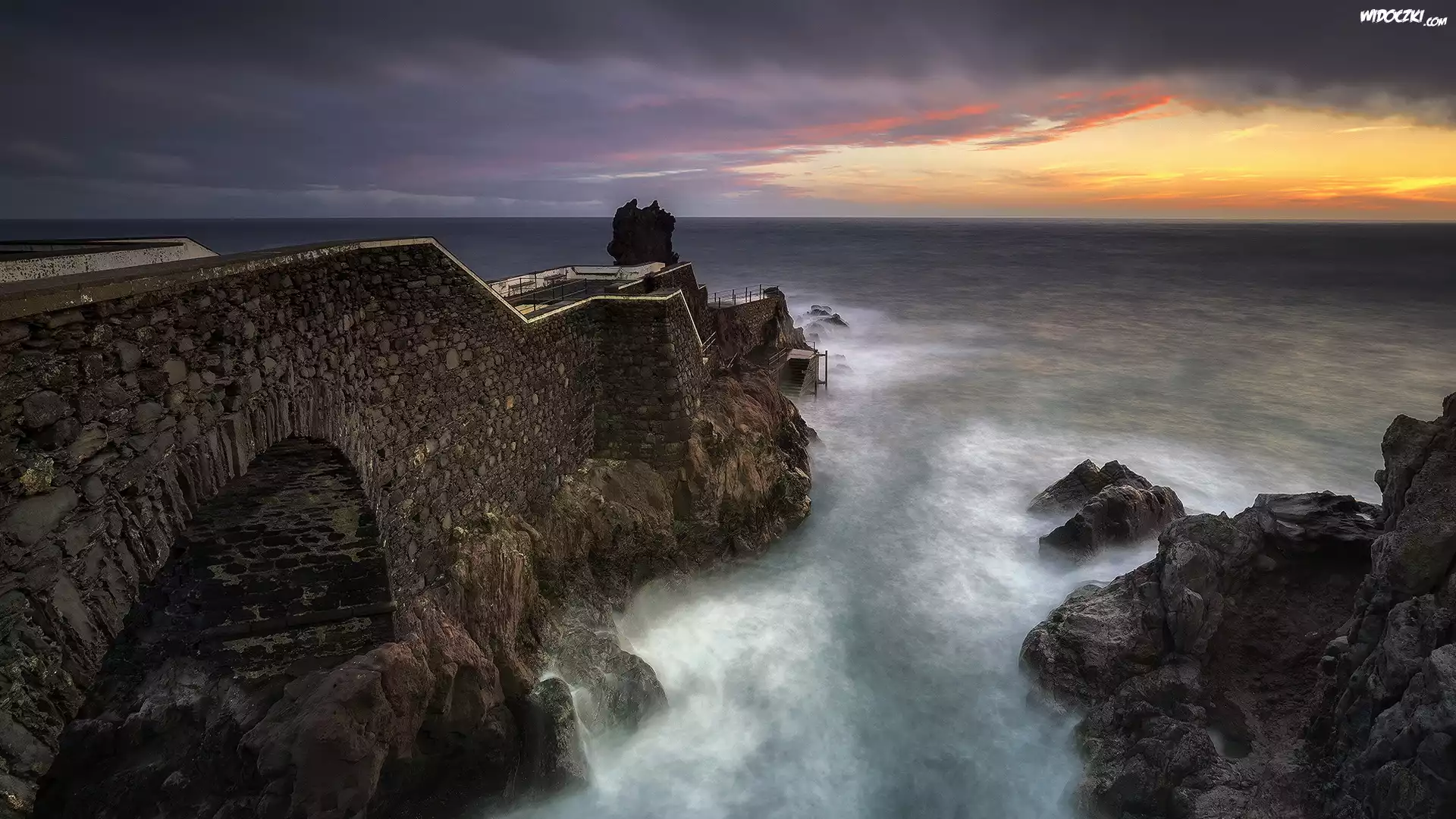 Morze, Skały, Wschód słońca, Kamienne, Zejście