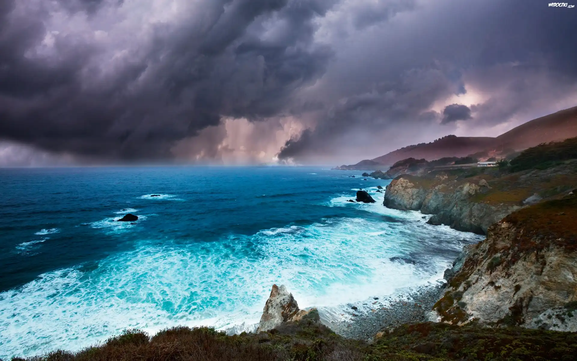 Zdjęcia, Morze, Skały, Klif, Chmury