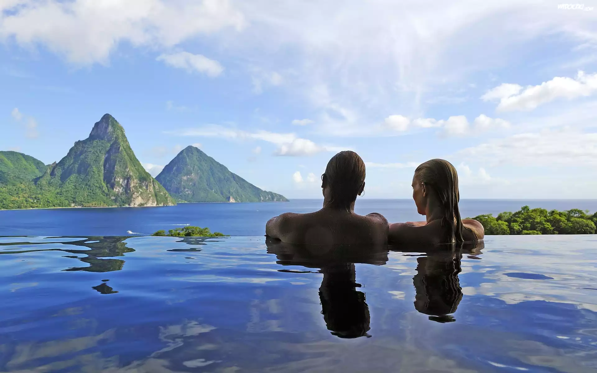Zdjęcia, Morze, Góry, Niebo, Kobieta, Mężczyzna