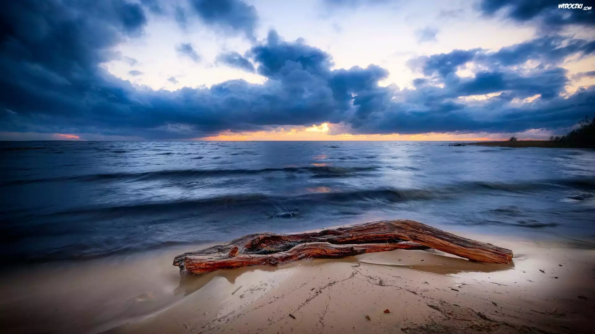 Zdjęcia, Morze, Chmury, Brzeg, Konar, Drzewa