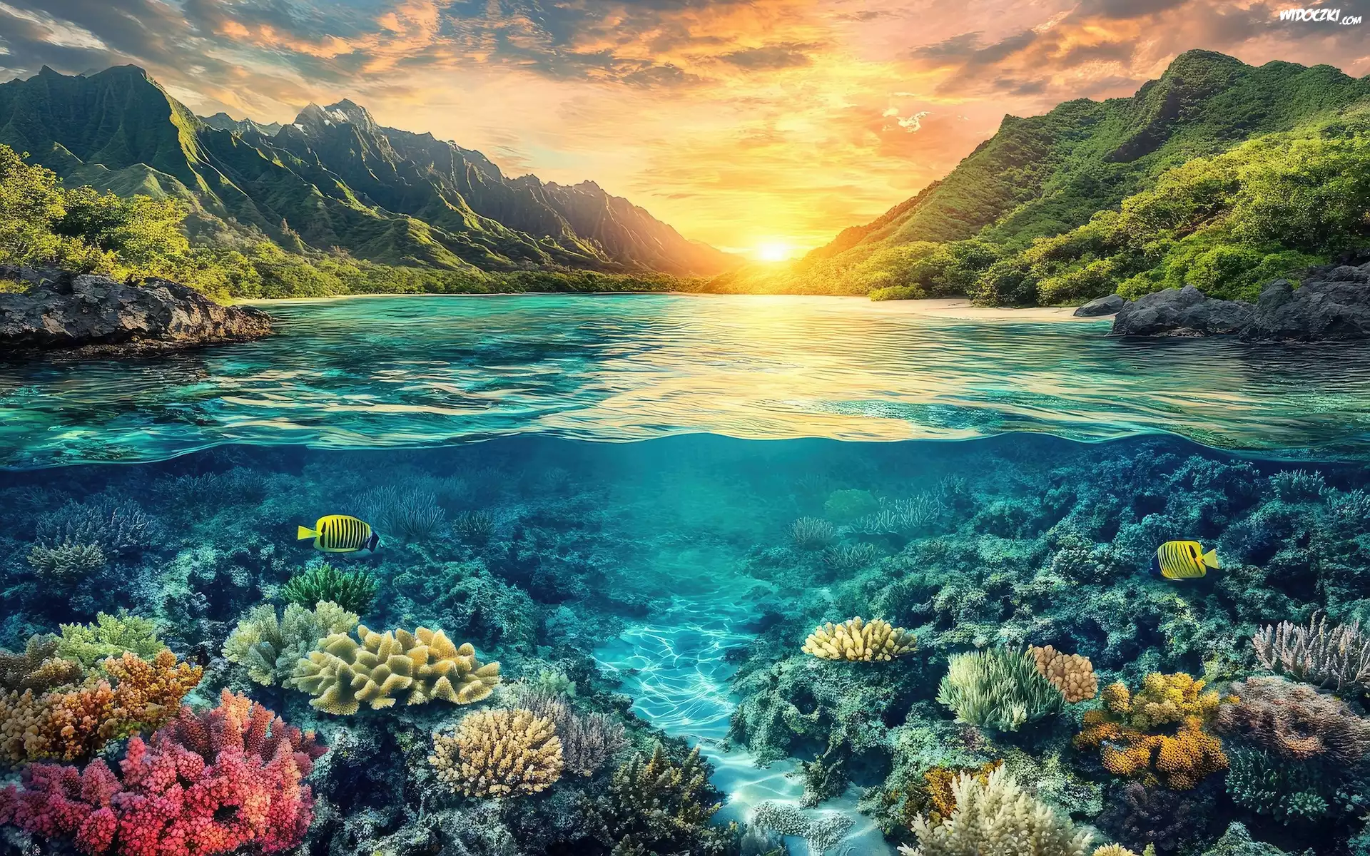 Morze, Rafa, Koralowa, Ławica, Ryb Góra, Skały Góra Zachód Słońca, Chmura, Góra Góra Pasiaste, Rybki, Rafy, Koralowe Góra Zachód Słońca, Zatoka, Łódki Góra Lodowa, Morze Góra, Jezioro Góra, Skały Rybka, Błazenek, Rafa Skrzydlica, Ryby, Rafa Koralowa Góra, Wodospady, Paprocie