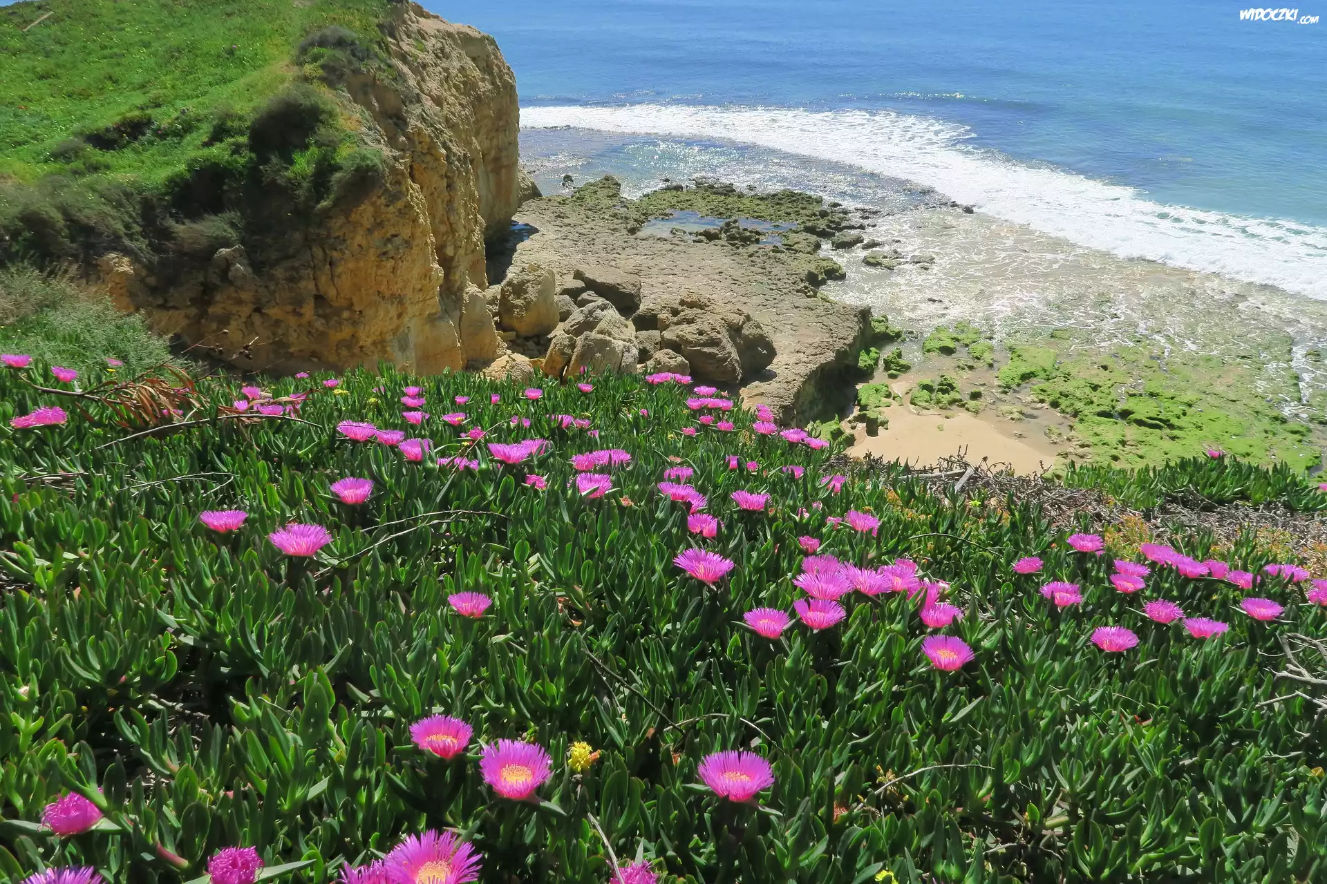 Zdjęcia, Kwiaty, Karpobrot, Klif, Morze
