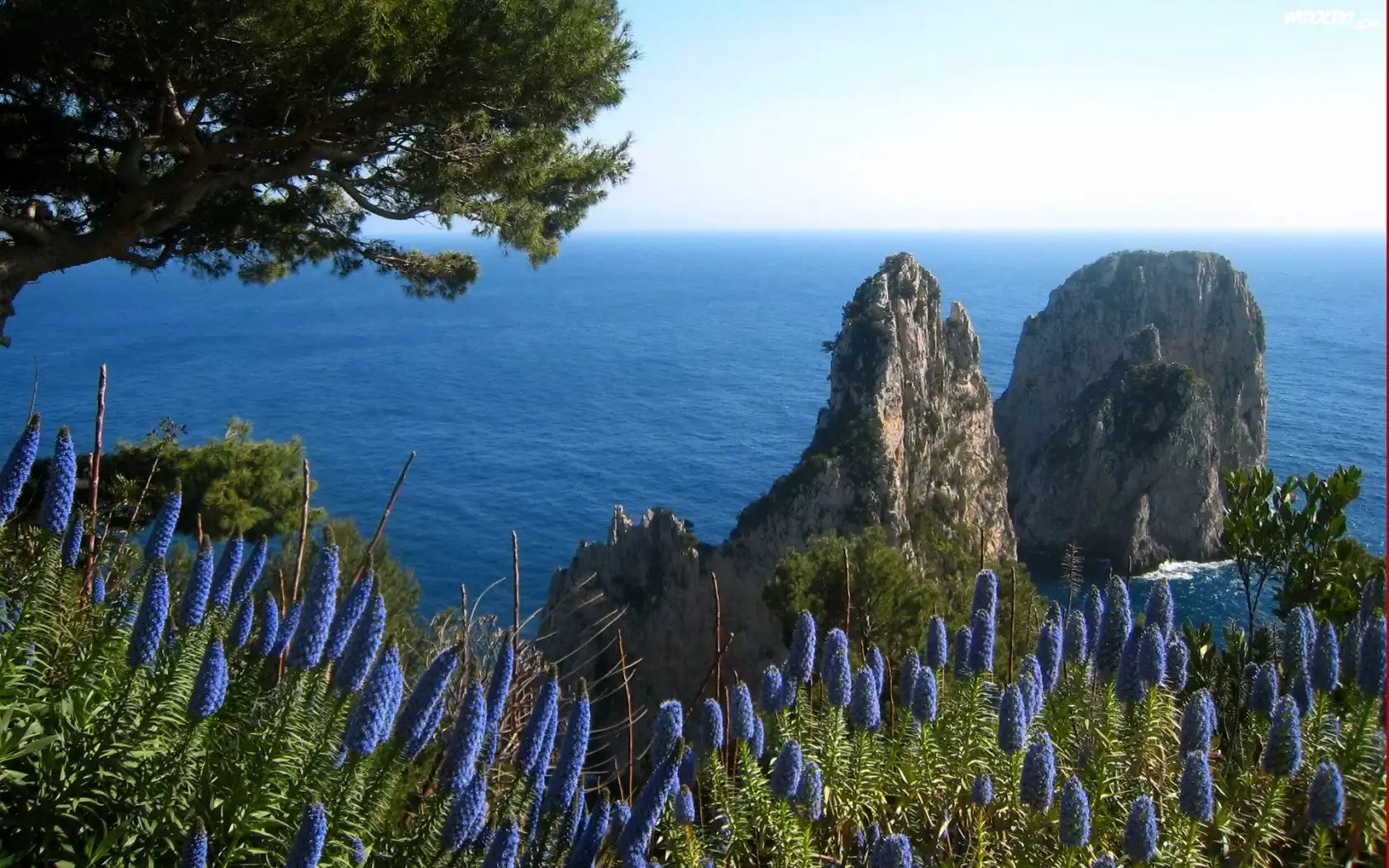 Zdjęcia, Morze, Skały, Kwiaty, Drzewo