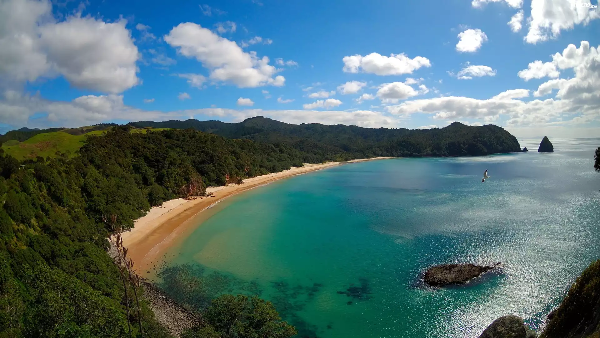 Zdjęcia, Morze, Plaża, Las, Mewa