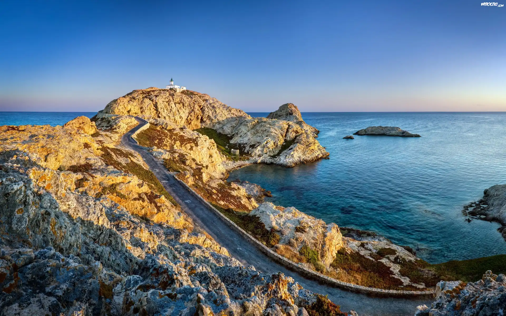 Zdjęcia, Morze, Skały, Droga, Latarnia Morska