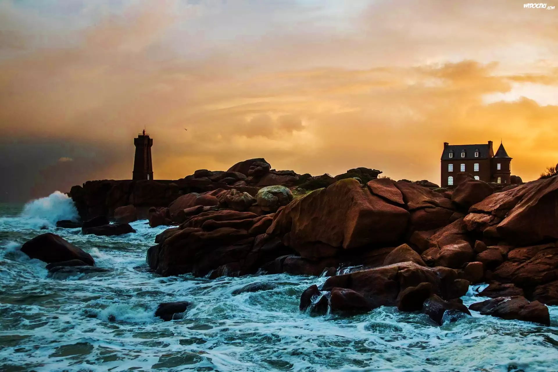 Zdjęcia, Morze, Skały, Latarnia, Morska