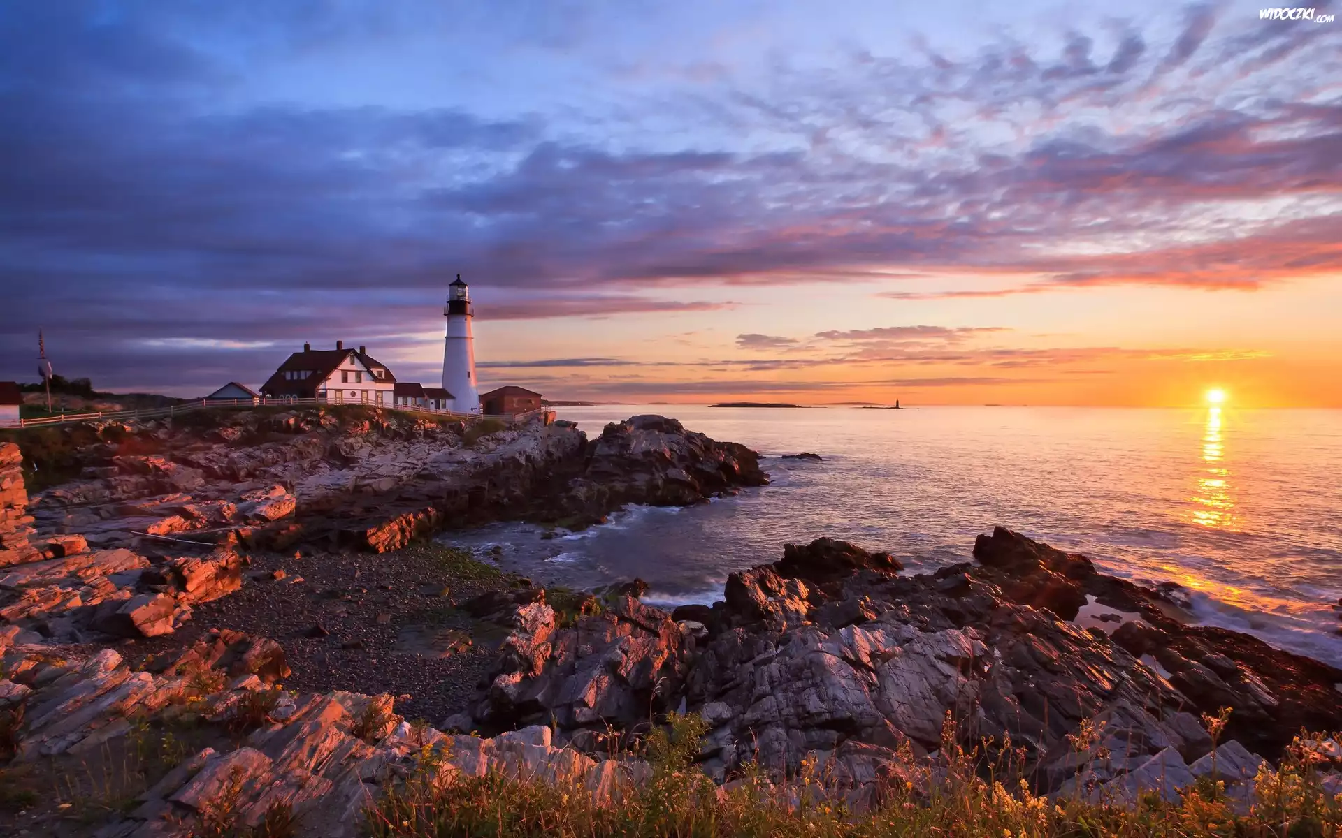Morze, Zachód słońca, Latarnia morska