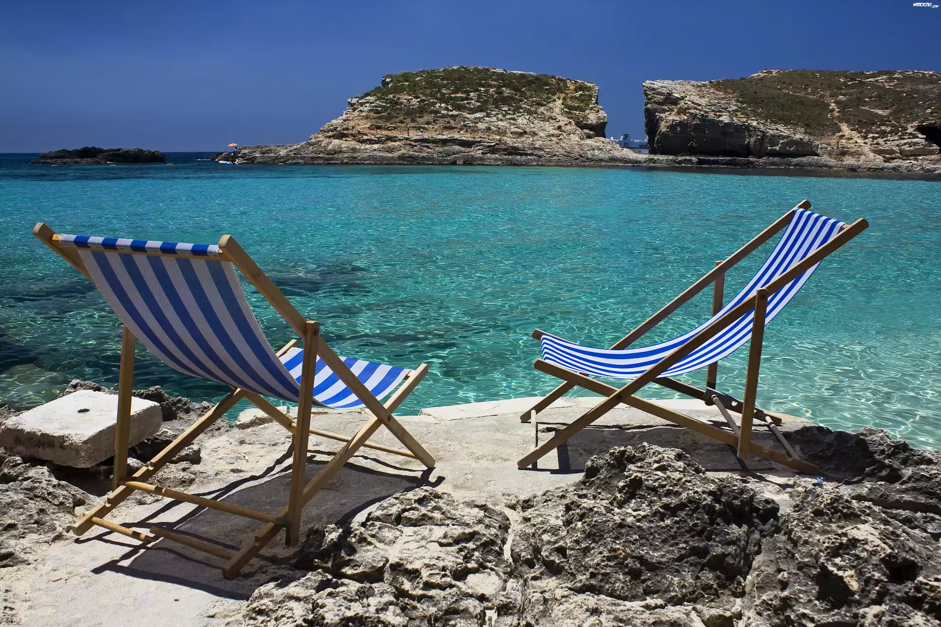 Zdjęcia, Leżaki, Morze, Skały, Wakacje