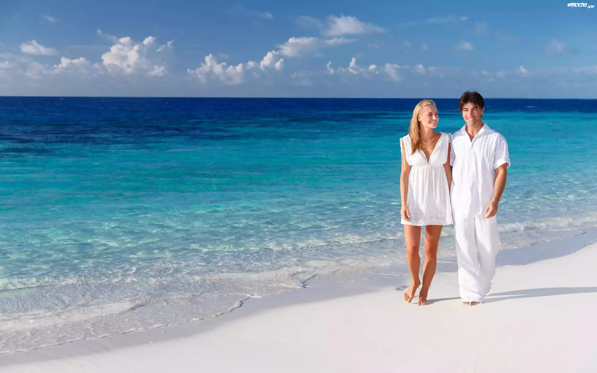 Zdjęcia, Morze, Plaża, Kobieta, Meżczyzna, Spacer