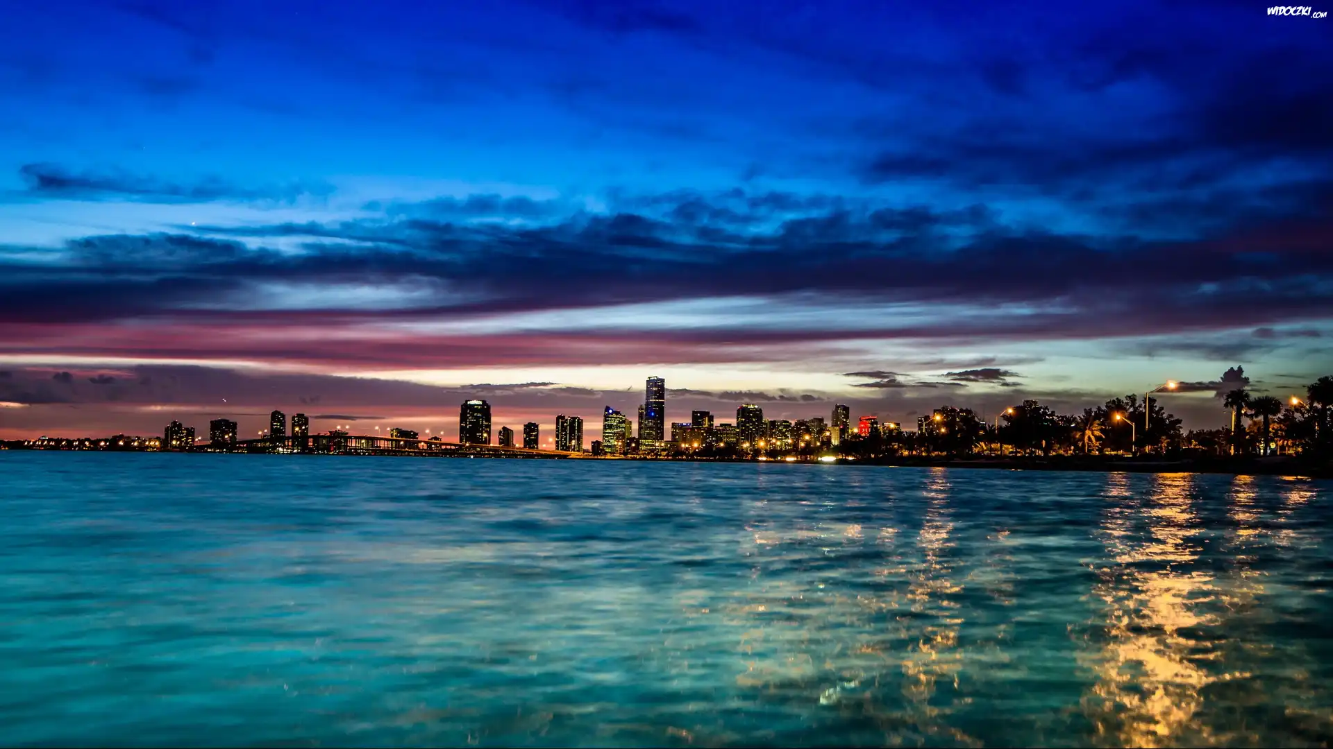 Zdjęcia, Morze, Drapacze, Chmur, Miasto, Nocą