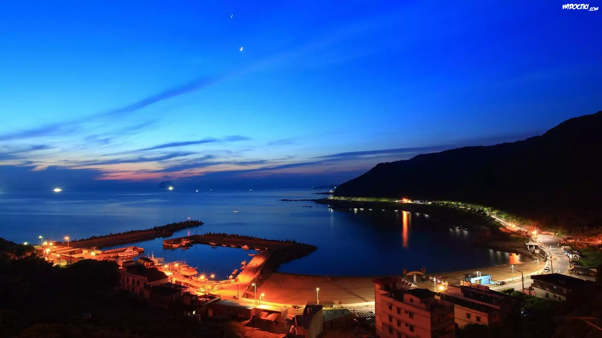 Zdjęcia, Morze, Zatoka, Wieczór, Miasto nocą