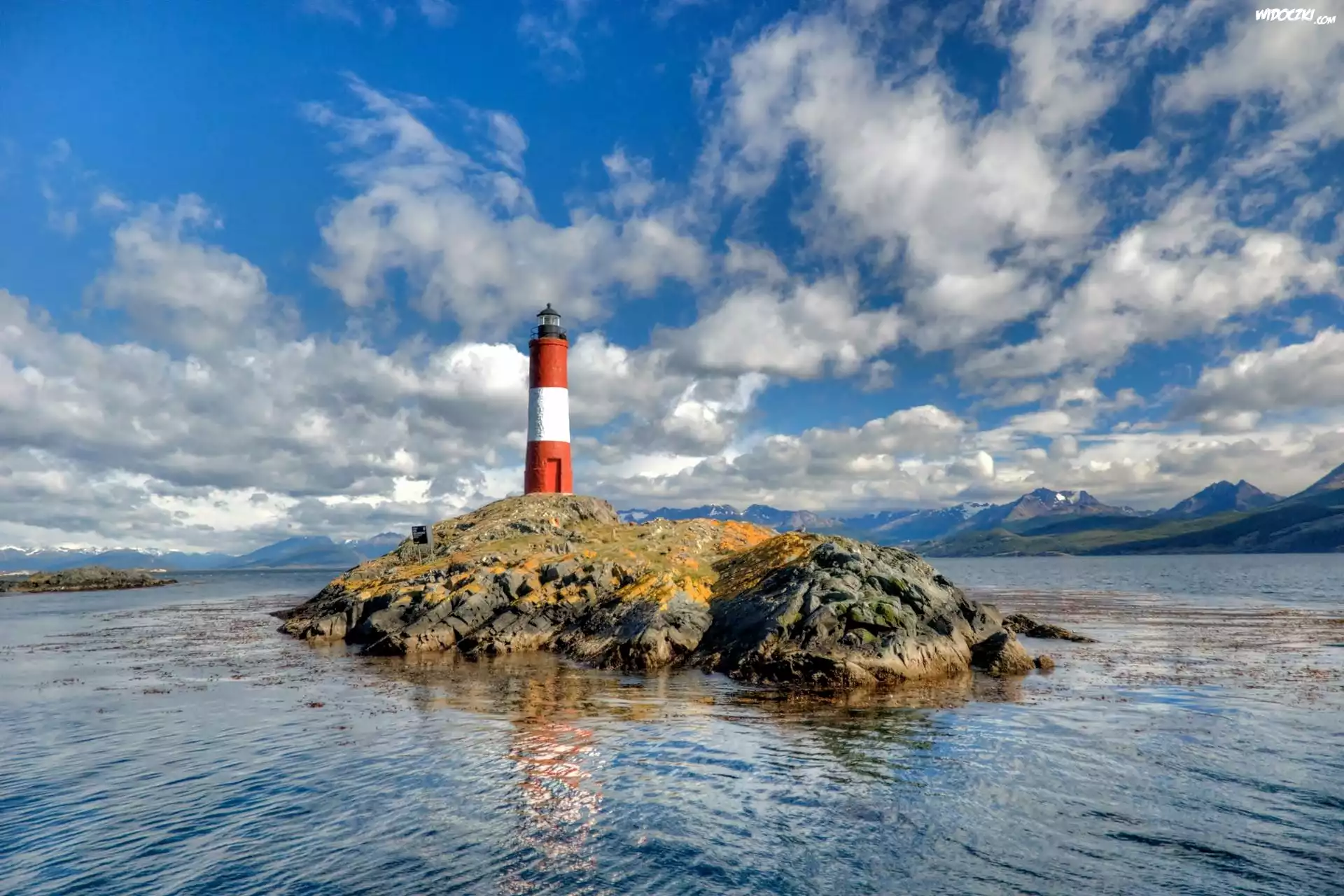 Zdjęcia, Morze, Skalista, Wysepka, Latarnia, Morska, Obłoki