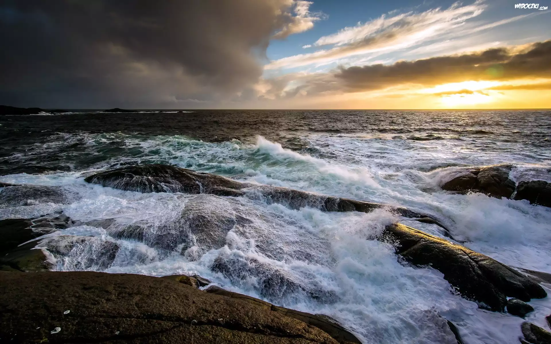 Zdjęcia, Morze, Fale, Nadciągające, Chmury