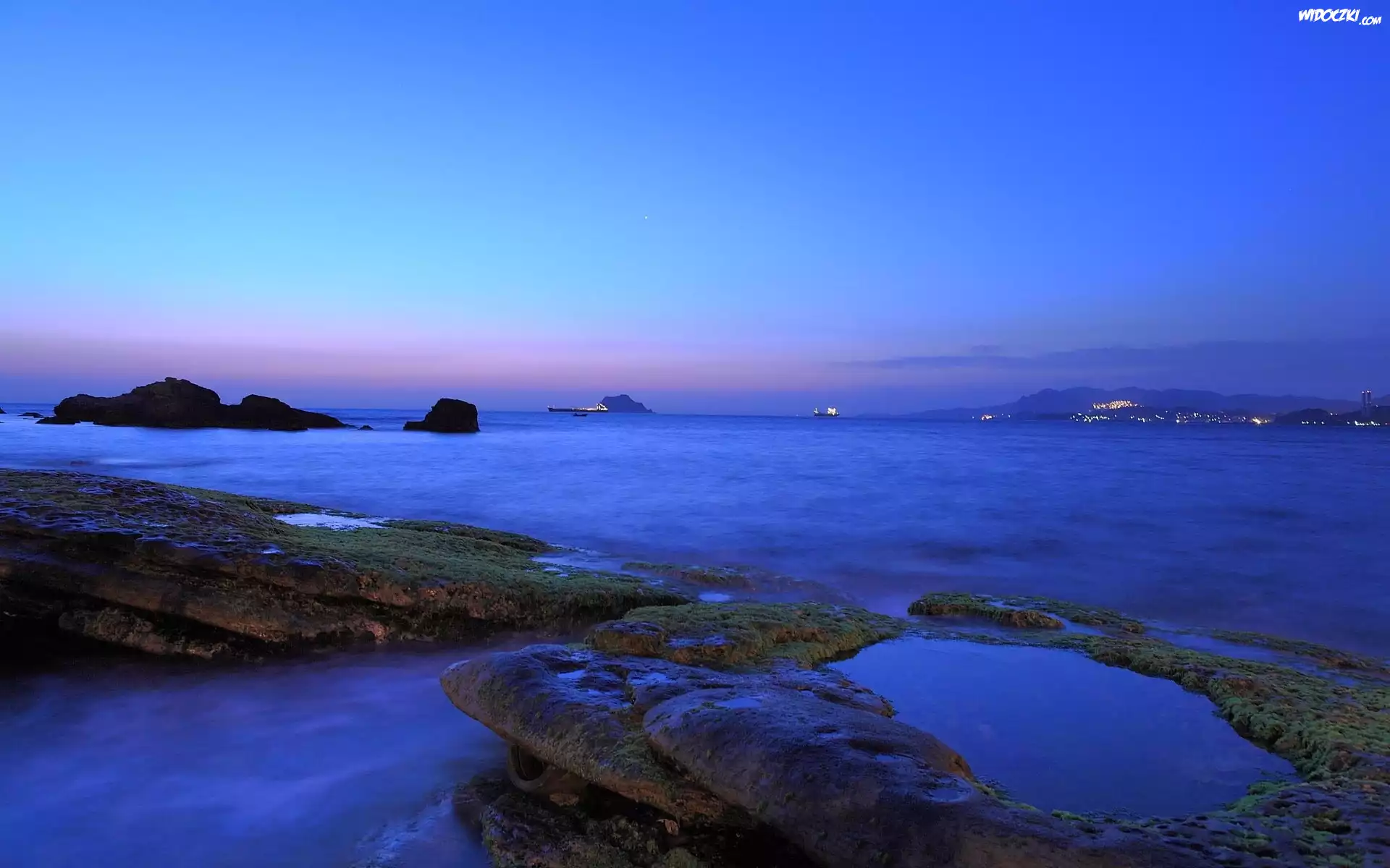 Zdjęcia, Niebieskie, Morze, Wieczór
