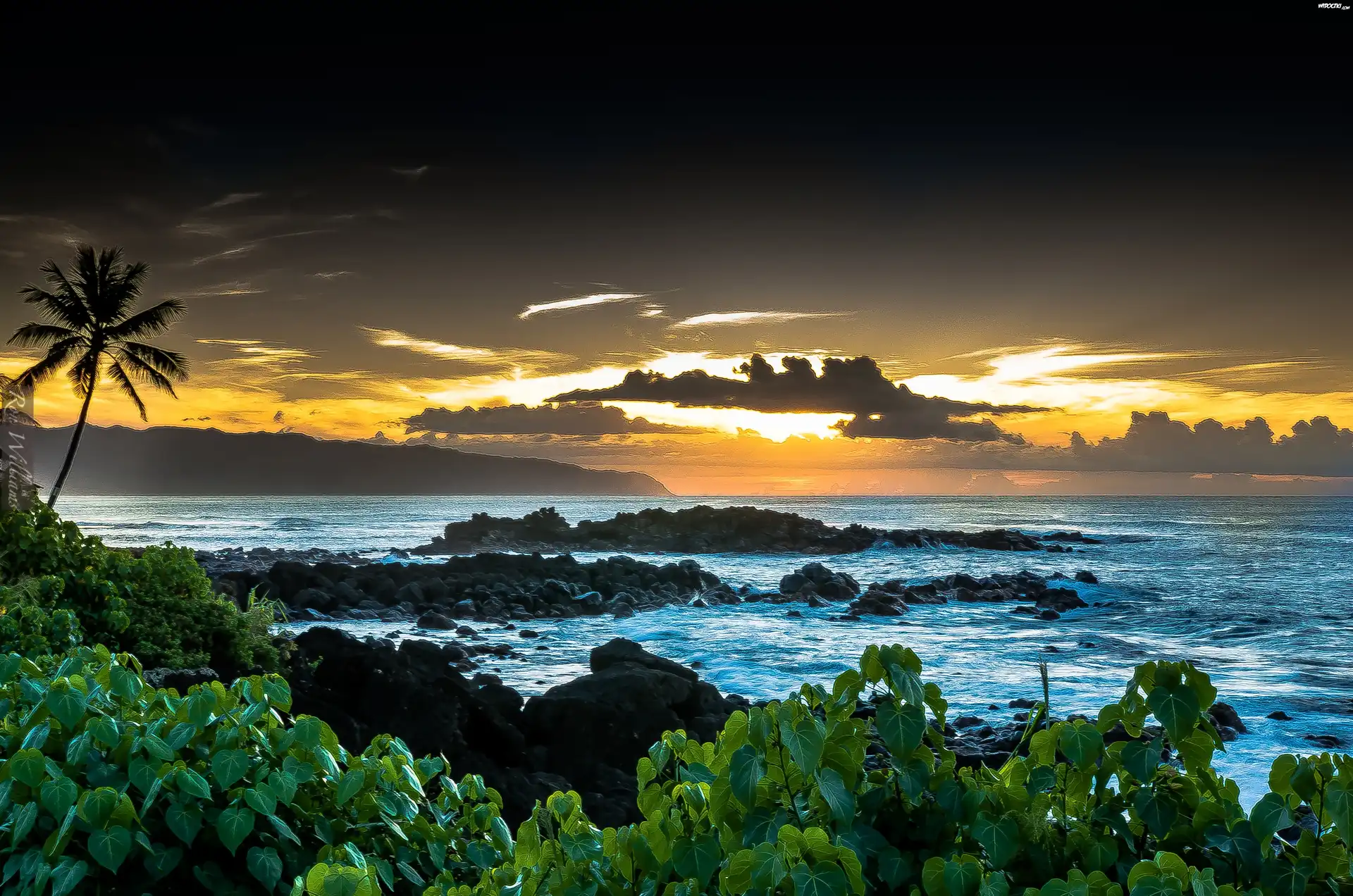 Morze, Chmury, Niebo, Kamienie