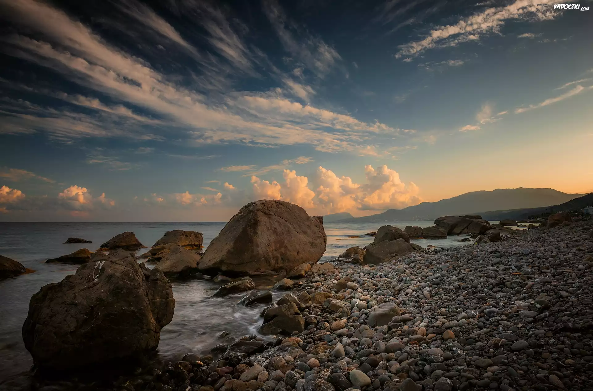 Zdjęcia, Morze, Kamienie, Głazy, Niebo, Chmury