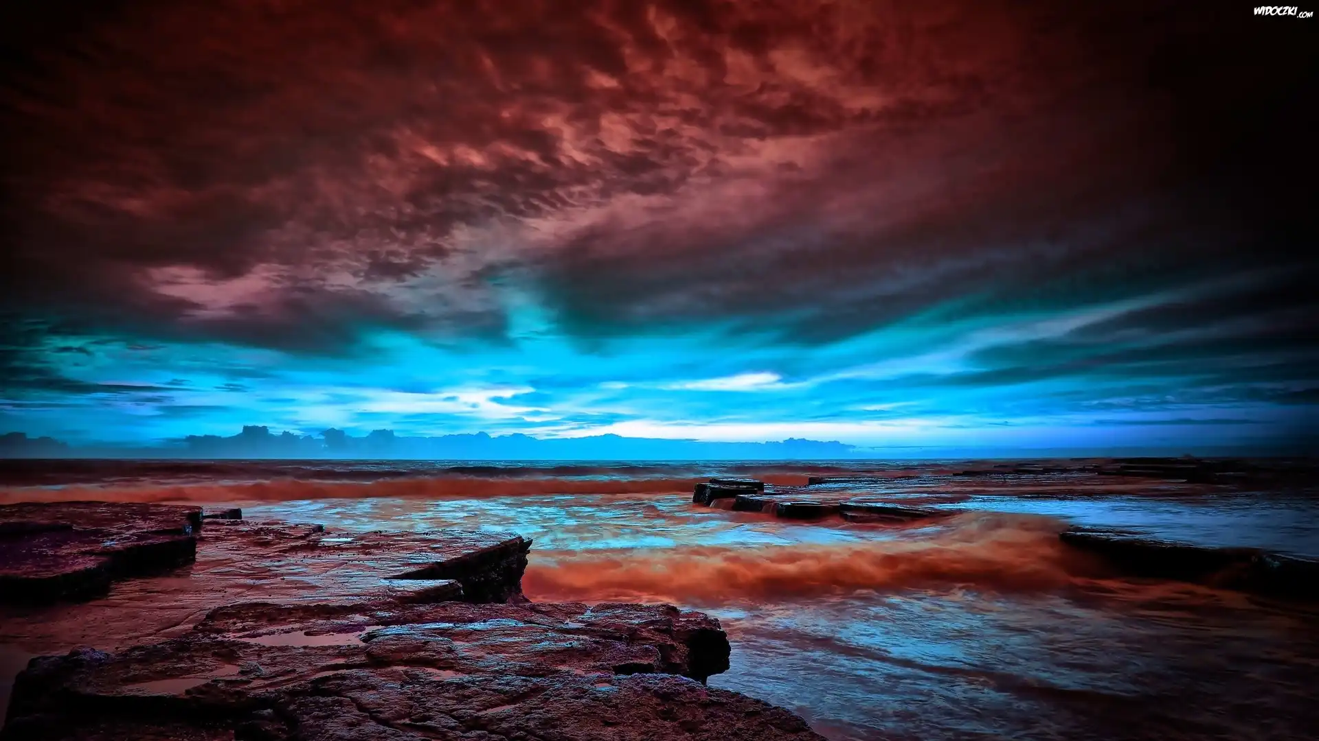 Zdjęcia, Morze, Skały, Niebo, Chmury